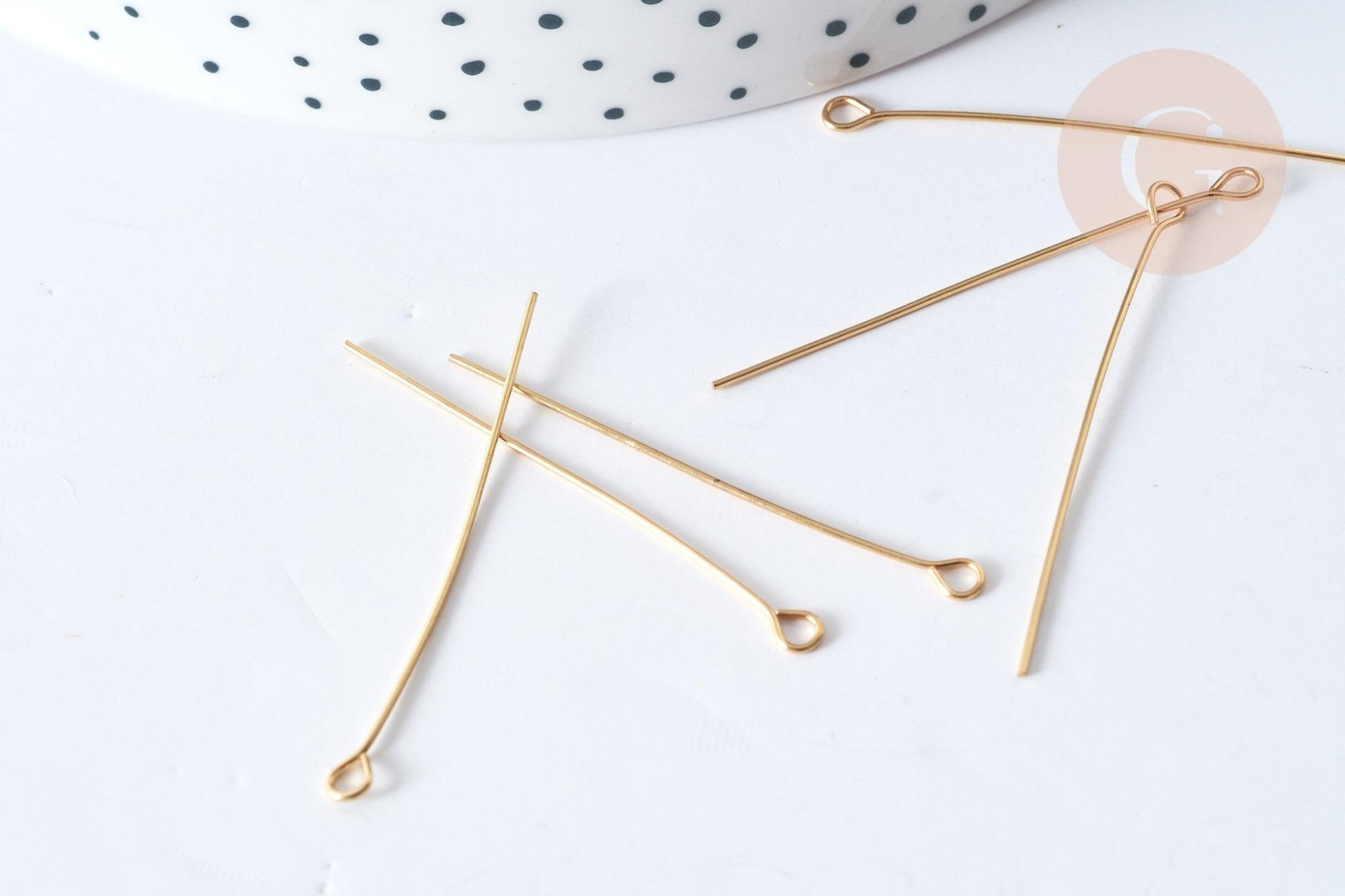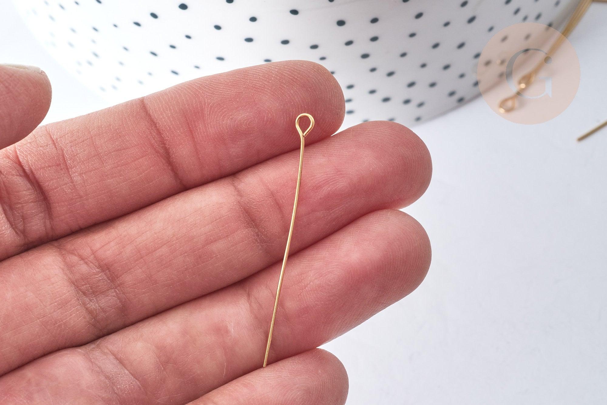 These 40mm gold-plated stainless steel round loop head head findings are essential for jewelry making. They allow you to thread beads and stones to create pendants, charms, and decorative elements for your necklaces, bracelets, and earrings. Sturdy, durable, and easy to work with, they are perfect for both beginners and experienced jewelry makers.