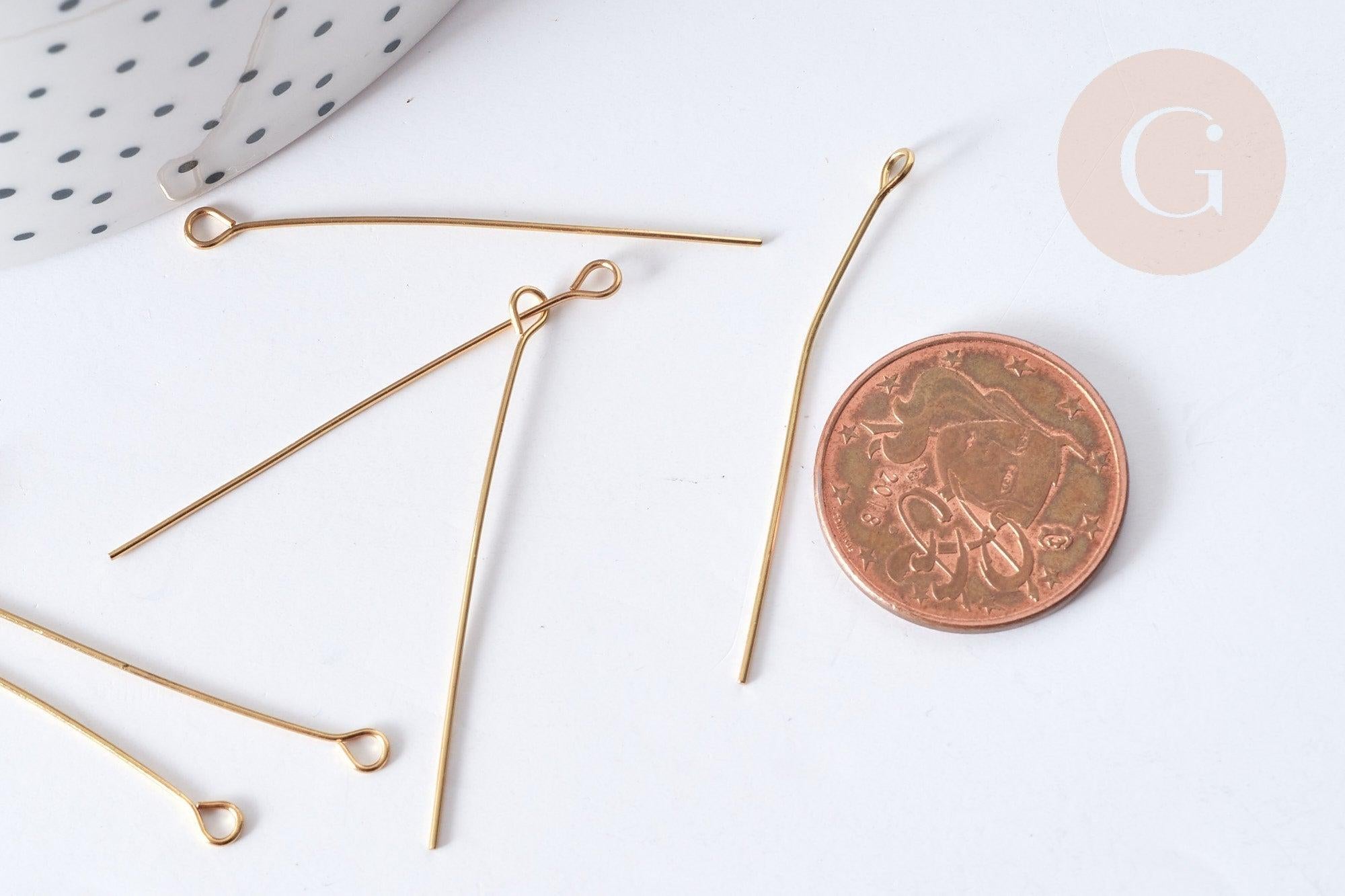Tiges tête boucle ronde acier 304 inoxydable doré 40mm, x10 (G8009)