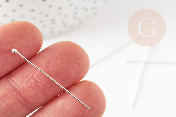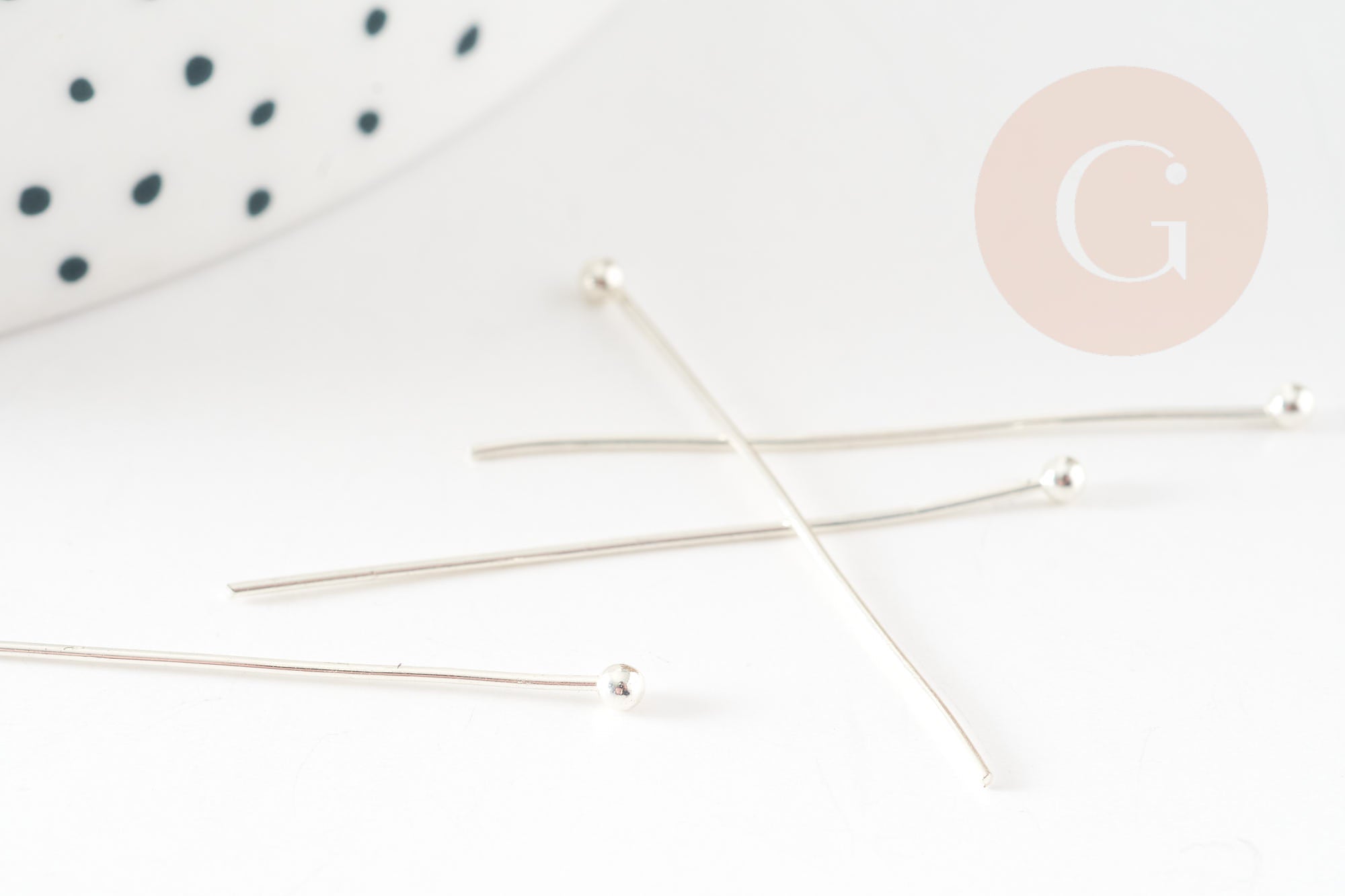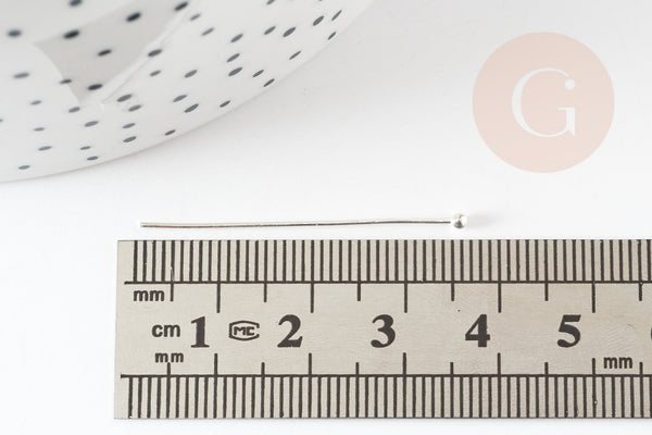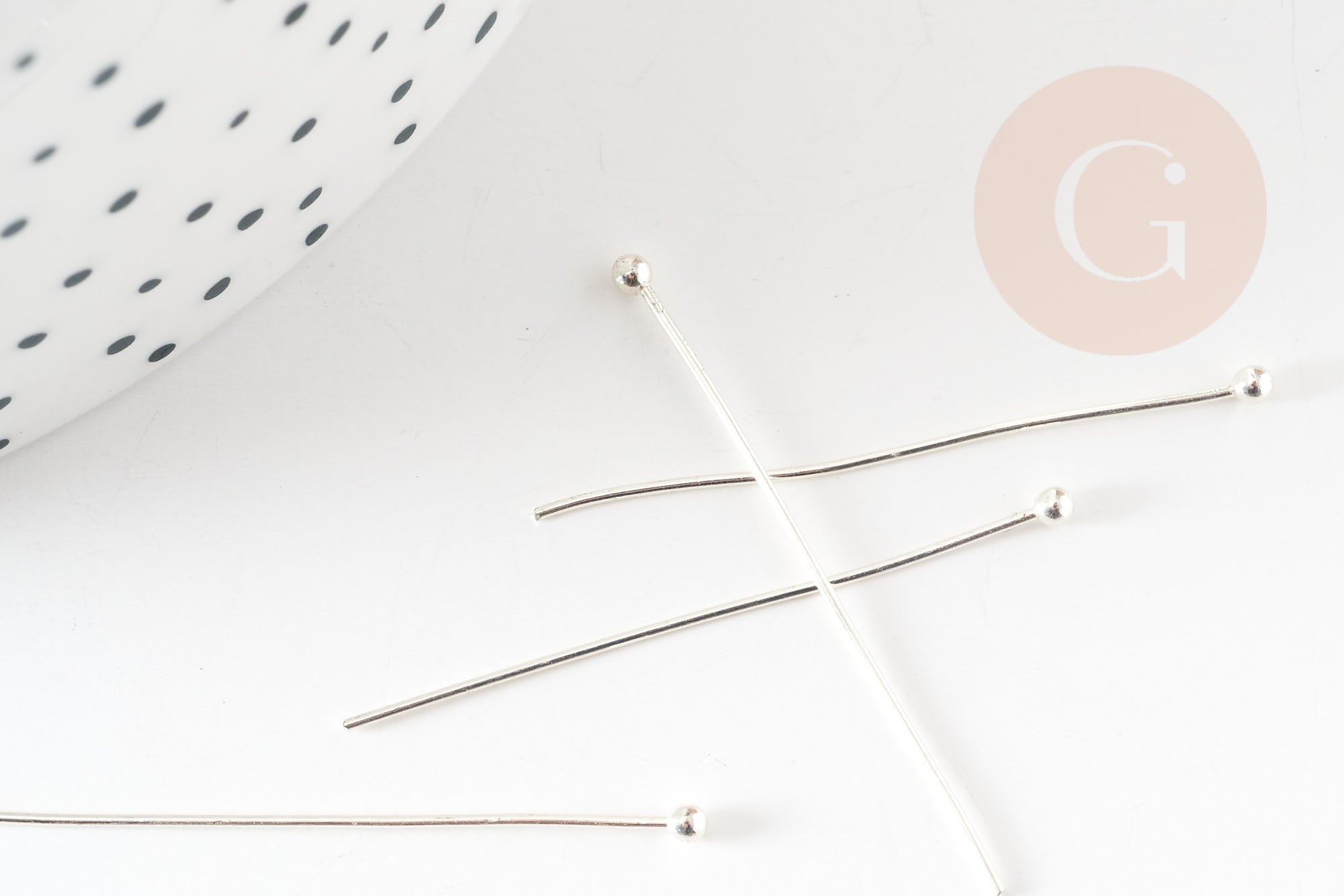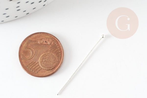 Clou tige tête boule laiton argenté 35mm x10 (G9249)