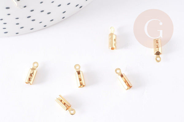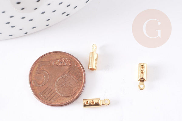 Golden steel rope ends to pinch, golden creative supplies for nickel-free jewelry creation, chain ribbon finish, set of 10, 10mm
