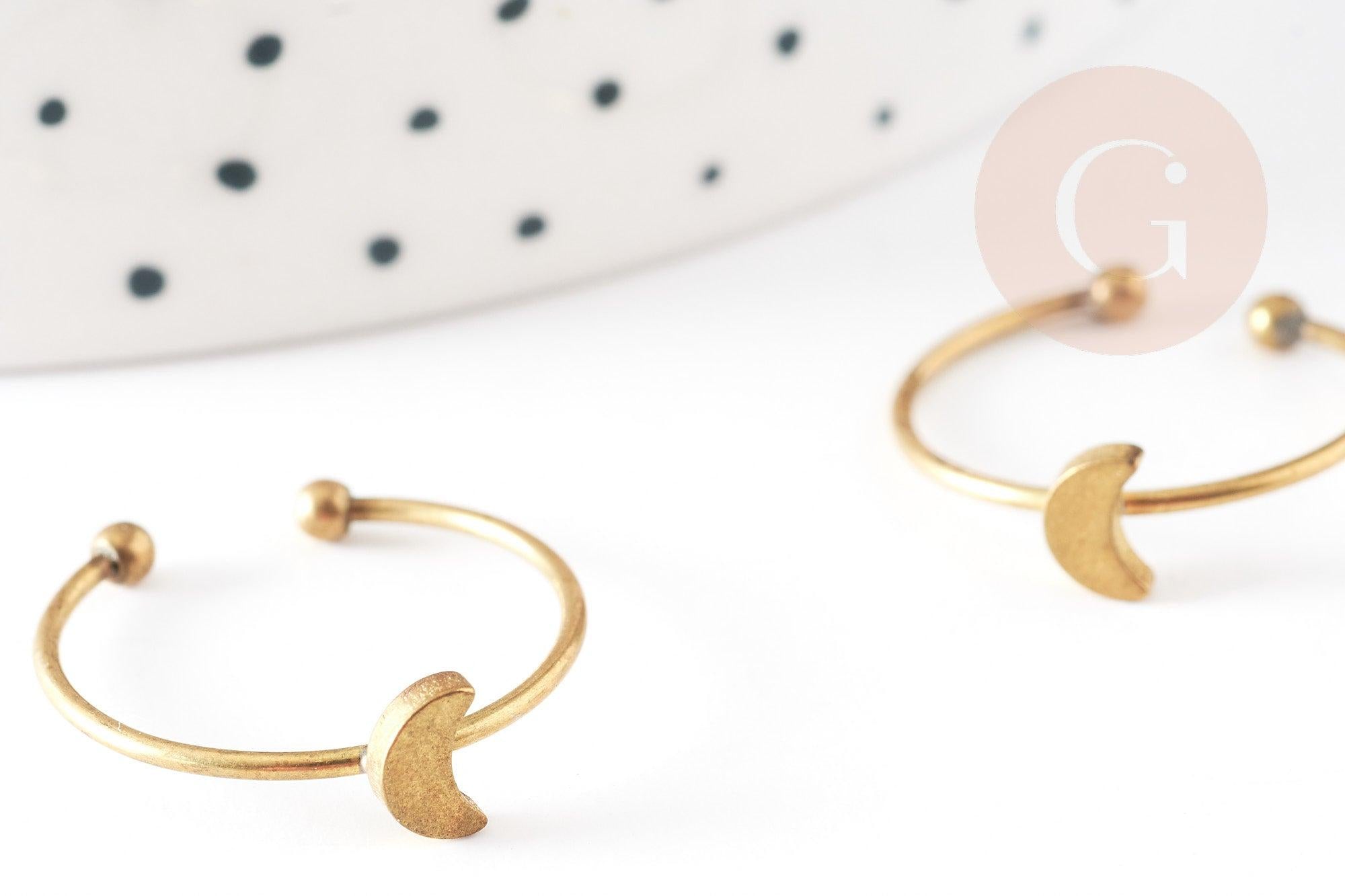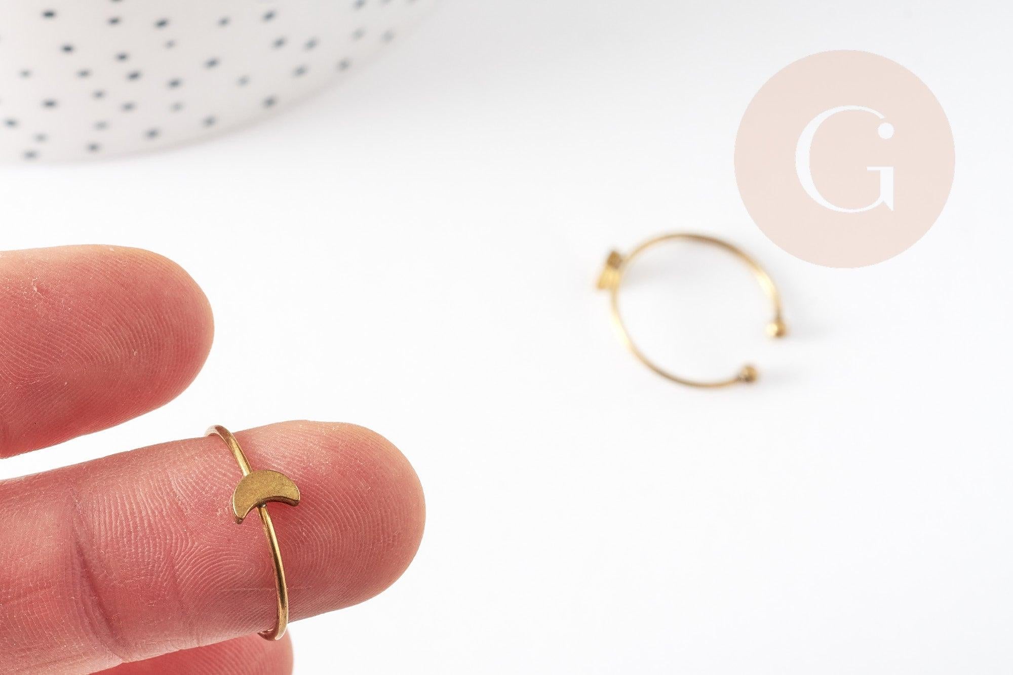 Adjustable thin moon ring in raw brass, jewelry creation, raw brass ring, fine jewelry, ring support, women's ring, jewelry creation, 19mm