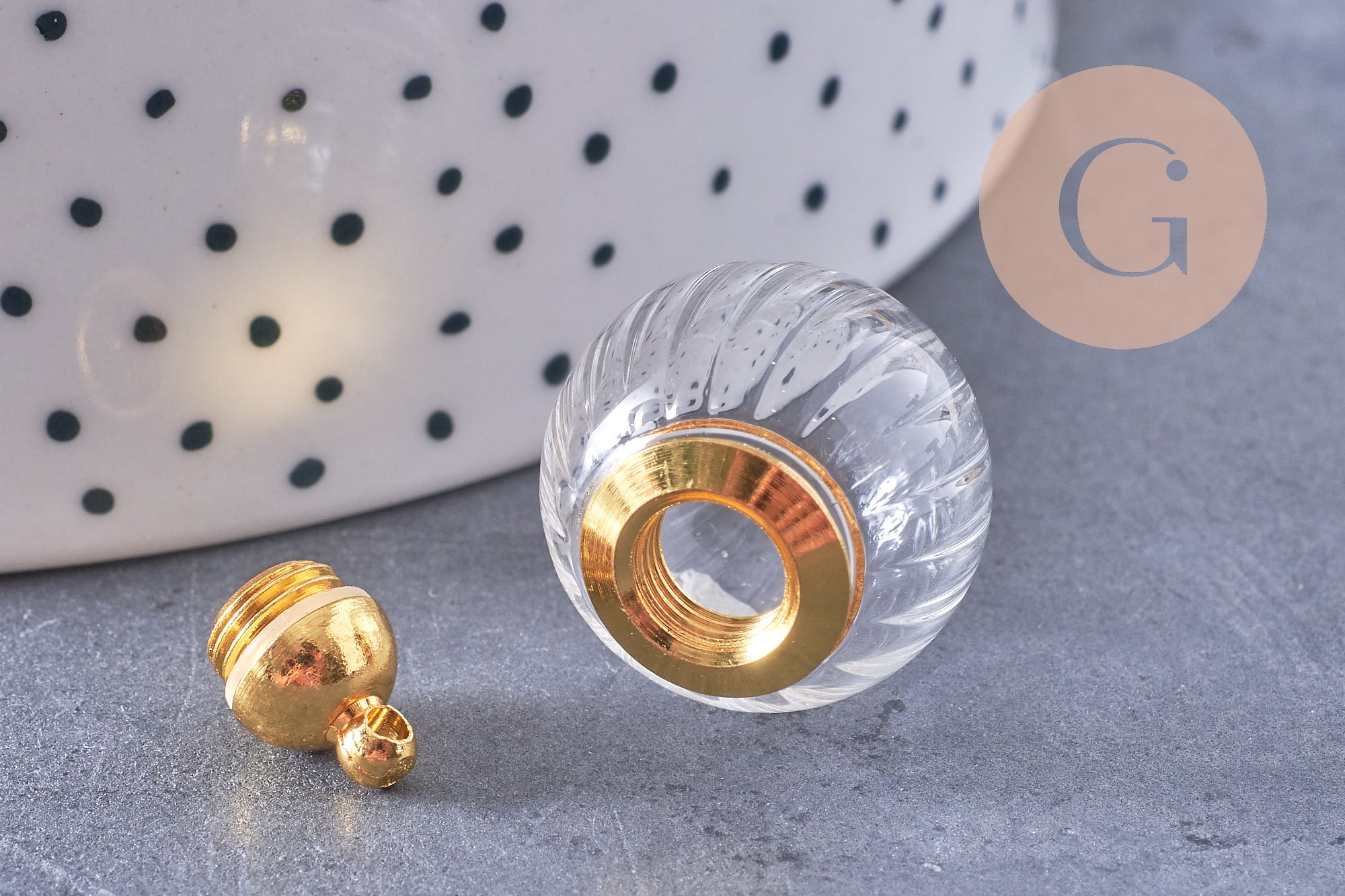 Add a poetic and original touch to your creations with this glass bubble pendant , closed with a golden brass cap . This miniature bottle is openable and refillable , perfect for creating personalized jewelry as desired.