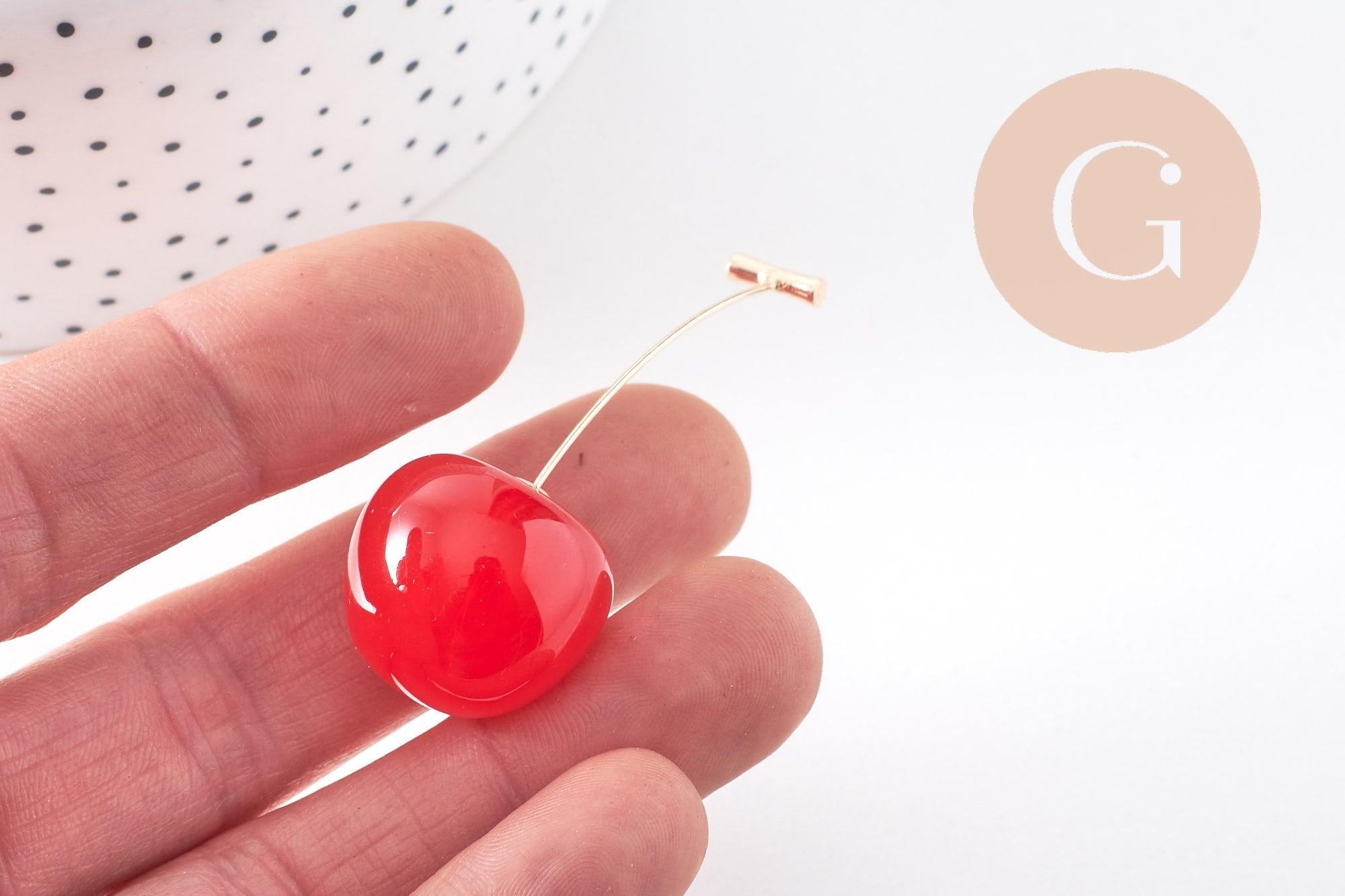 Add a bold, fruity touch to your outfits with these gorgeous cherry-shaped drop earrings , crafted from glossy red resin and mounted on a gold-plated zamac frame. Their whimsical, retro style will add a touch of fun to your look.