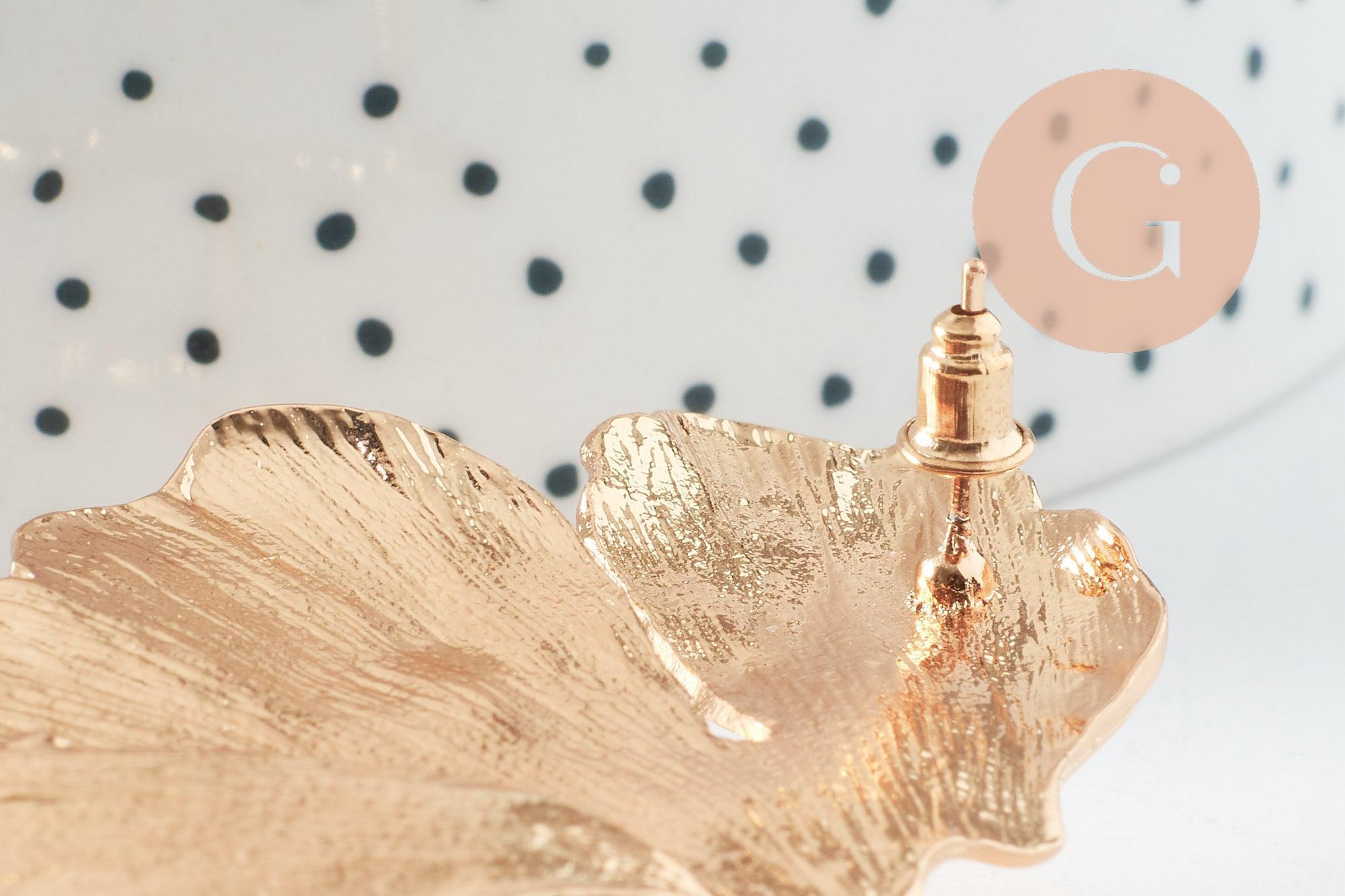 XXL Gingko flower earrings in gold zamac, pair (G9652)