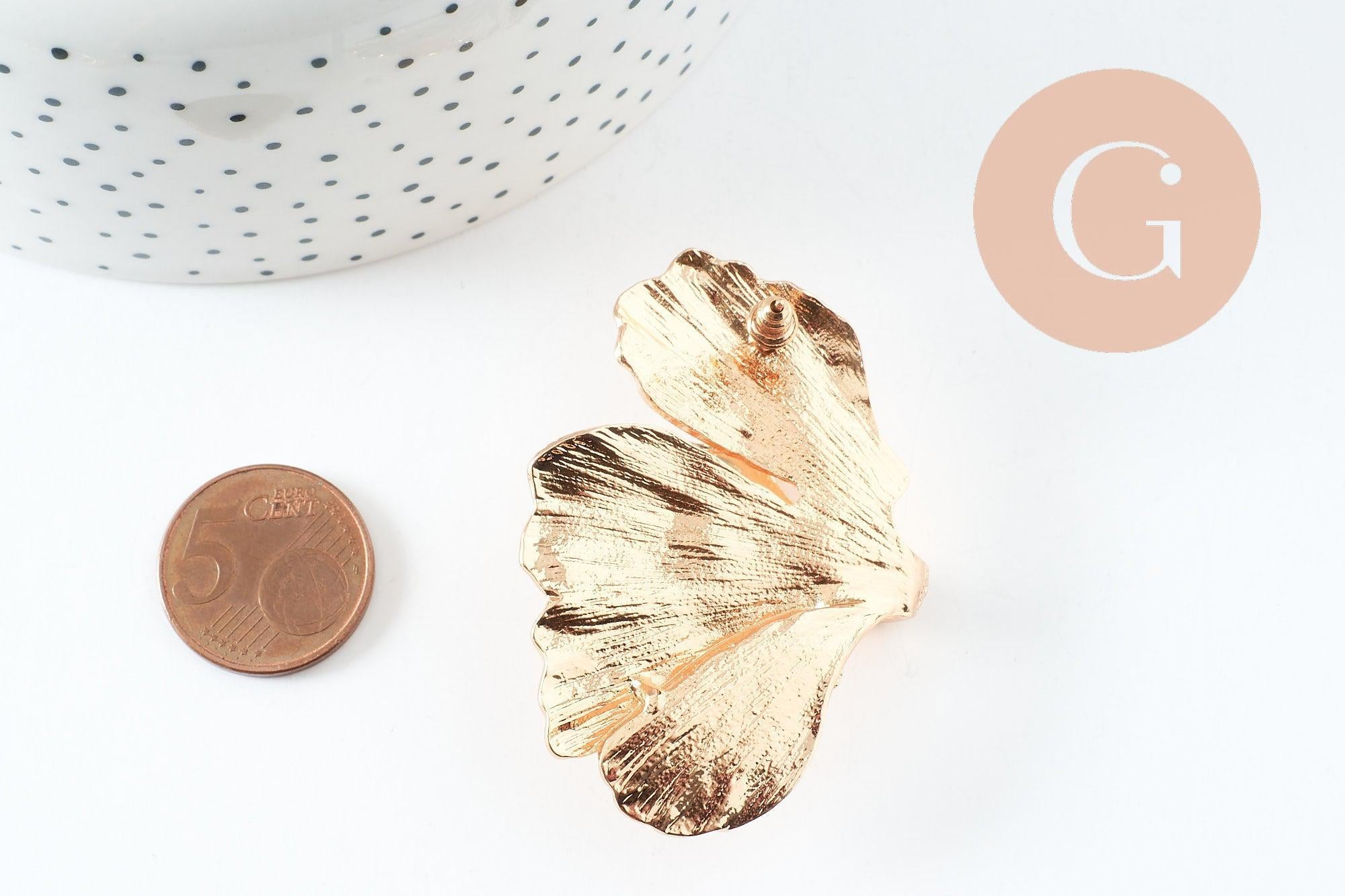 Boucles fleur Gingko XXL zamac doré, la paire (G9652)