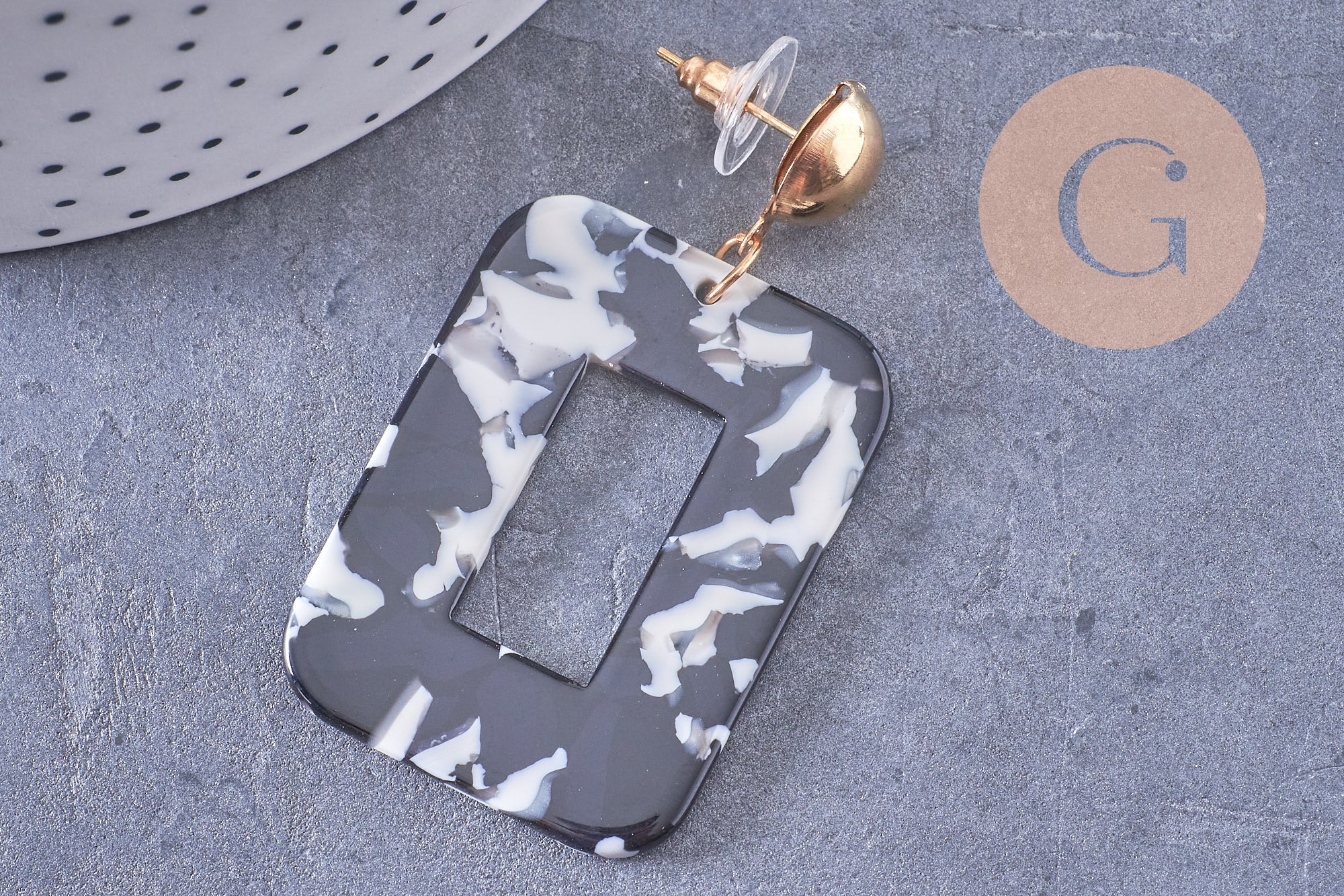 Bring a graphic and modern touch to your creations with these black and white resin dangling earrings . Their bold rectangular shape and play of contrasts make them a strong and stylish piece of jewelry, ideal for minimalist or arty looks.