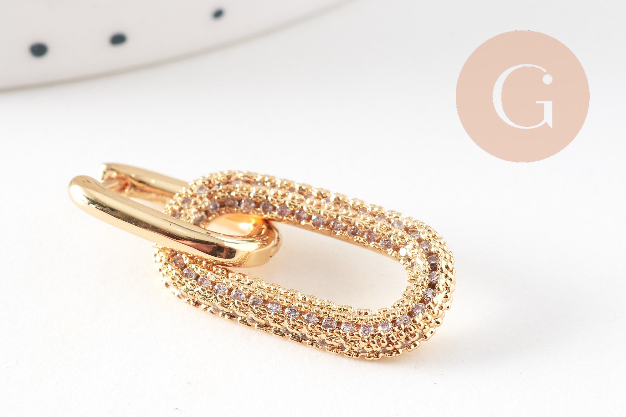 Long Creole in 16k gold-plated brass with multi-colored crystal zirconia, gold jewelry, pierced ear, birthday gift, pair of crystal earrings, 31mm