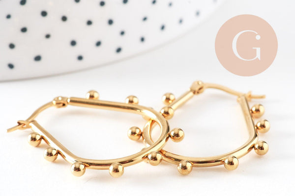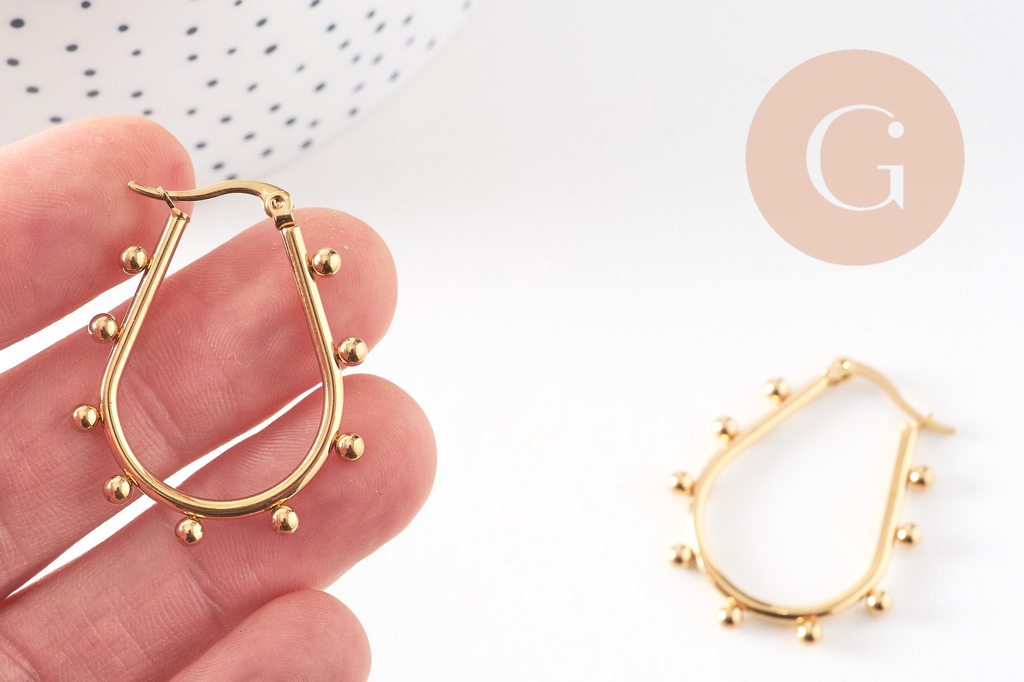 Gold-plated steel drop-shaped hoop earrings decorated with balls