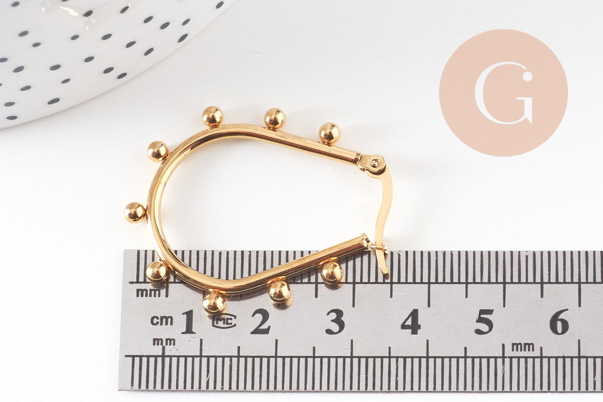 Gold-plated steel drop hoop earrings with balls, gold-plated jewelry, jewelry creation, pierced ear, nickel-free, pair, steel earrings, 36.2mm