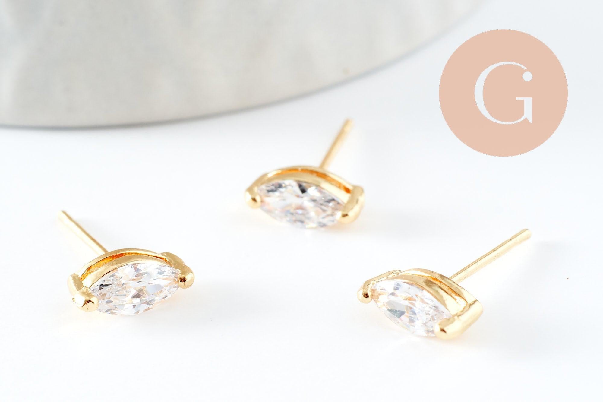 Gold-plated brass crystal stud earrings, gold-plated jewelry, creative supplies, jewelry creation, diamond earrings, nickel-free, pair, brass earrings