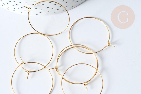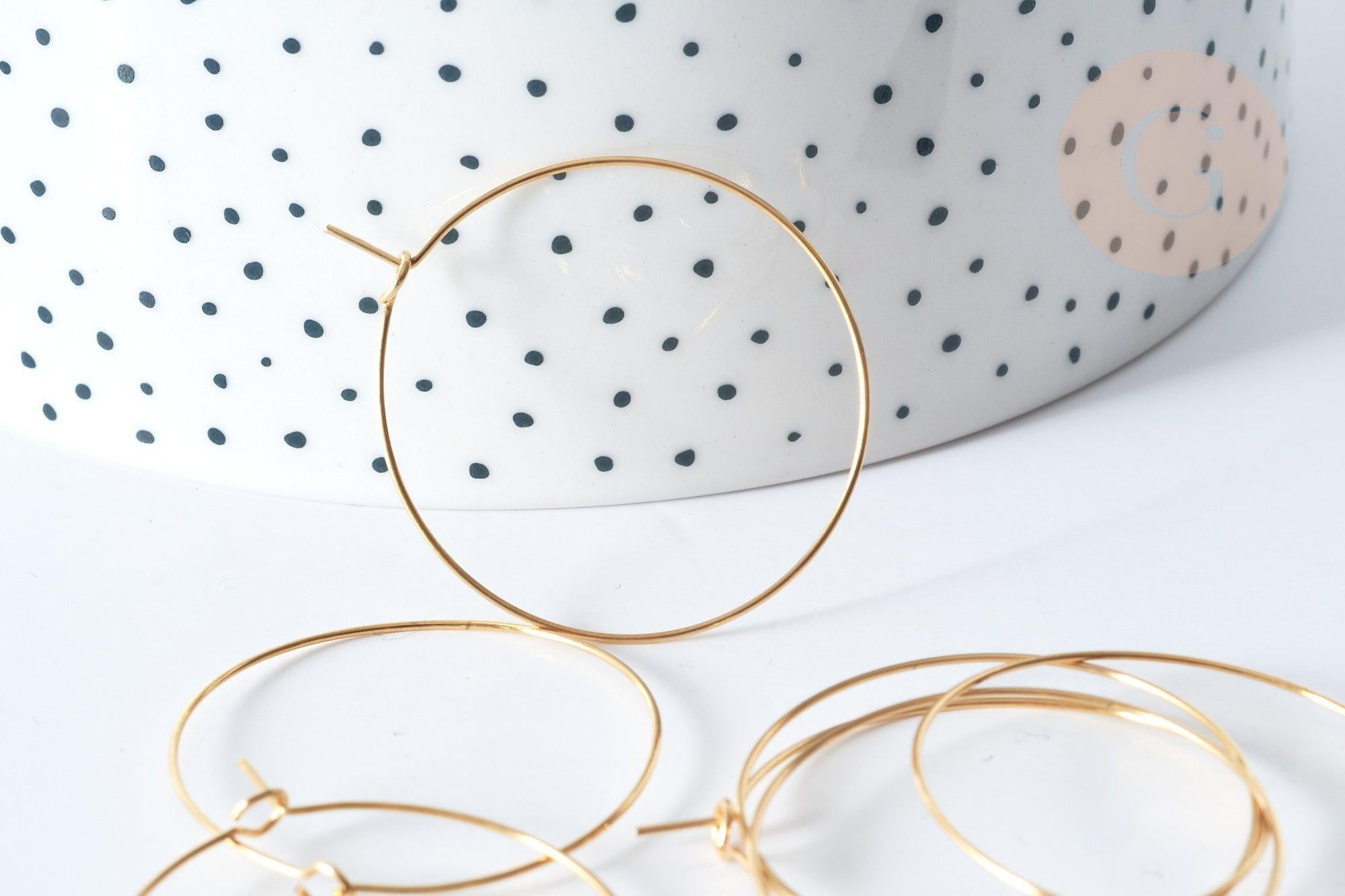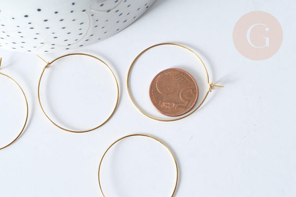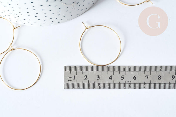 Set of 20-50 creole rings in 304 gold stainless steel 35mm, guaranteed quality and durability. They are nickel free, cadmium free and lead free, for safe use. Their ionized gilding is particularly resistant, ensuring their lasting shine.