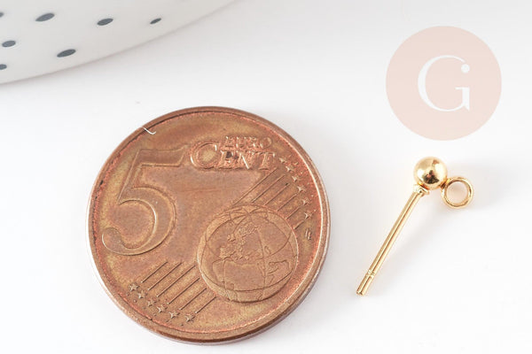 Clous-puces boule avec anneau acier inoxydable 304 doré 3mm, x10 (G9225)