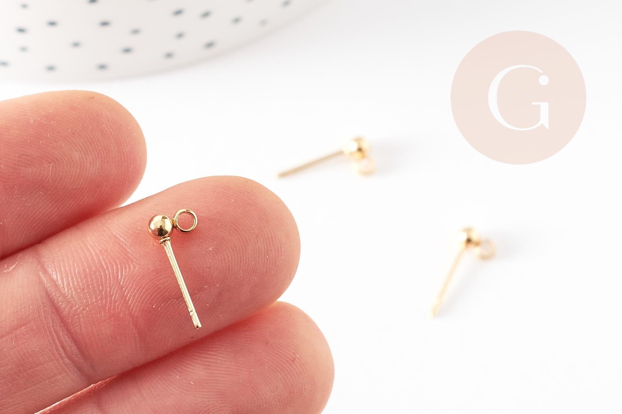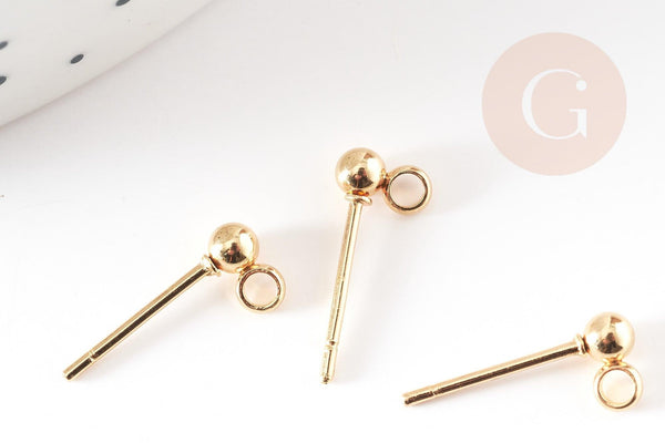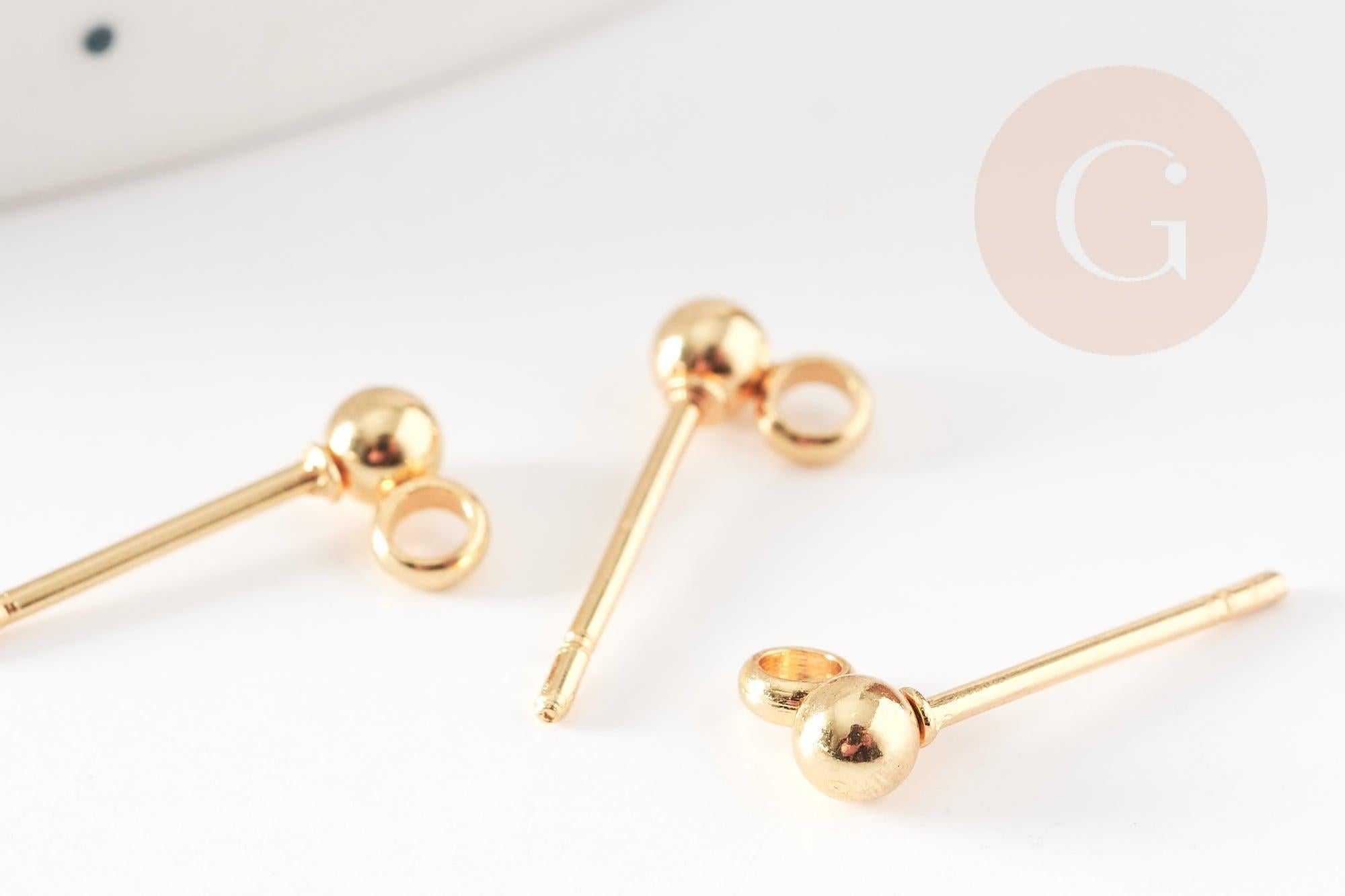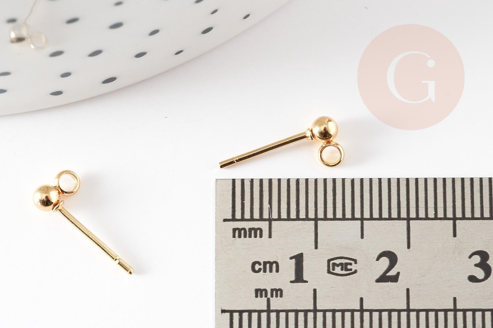 Add a stylish and functional finish to your DIY earrings with these gold-tone 304 stainless steel ball studs . Their small 3mm ball comes with a discreet ring, ideal for hanging beads, tassels, charms or small pompoms.