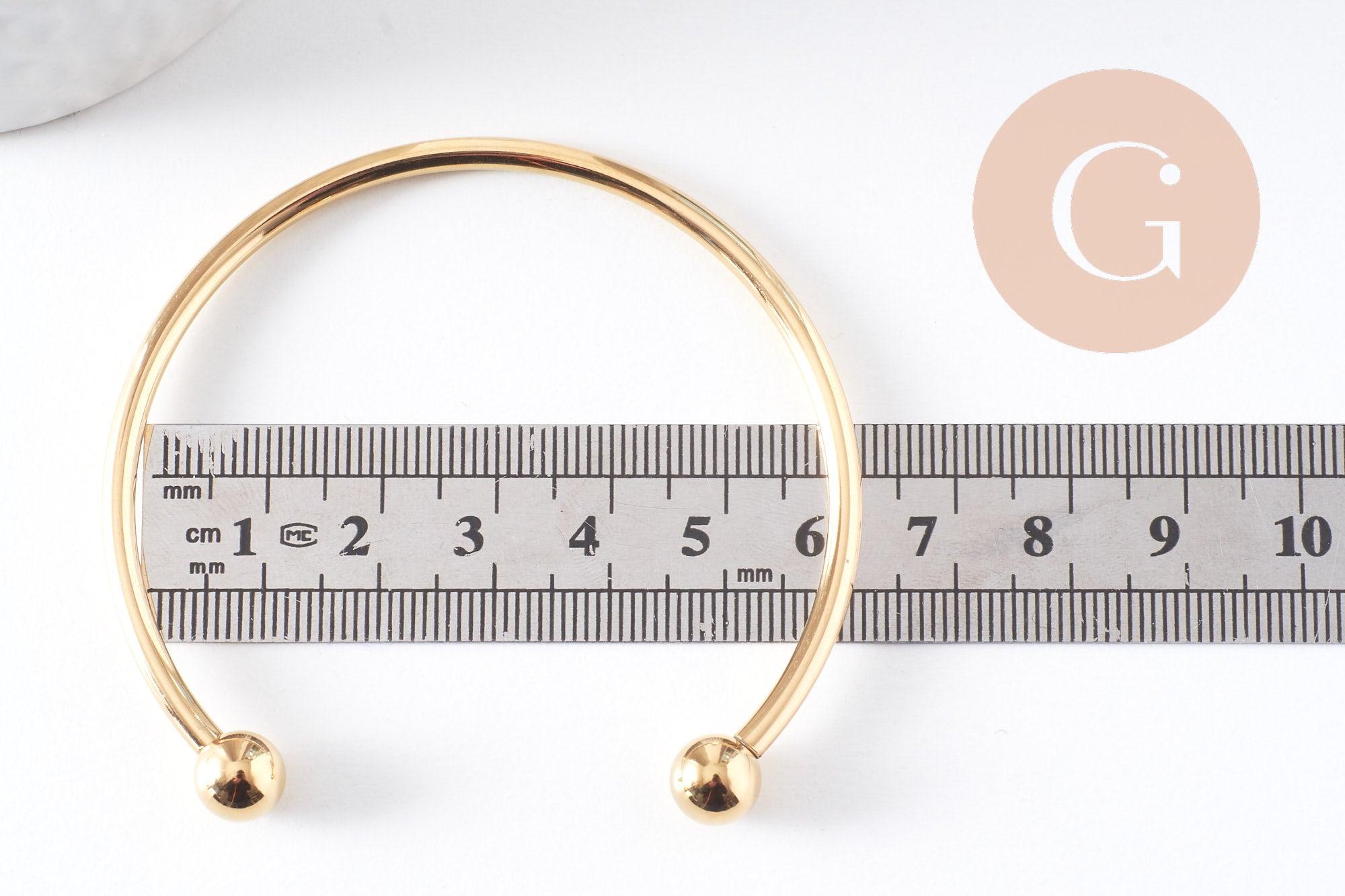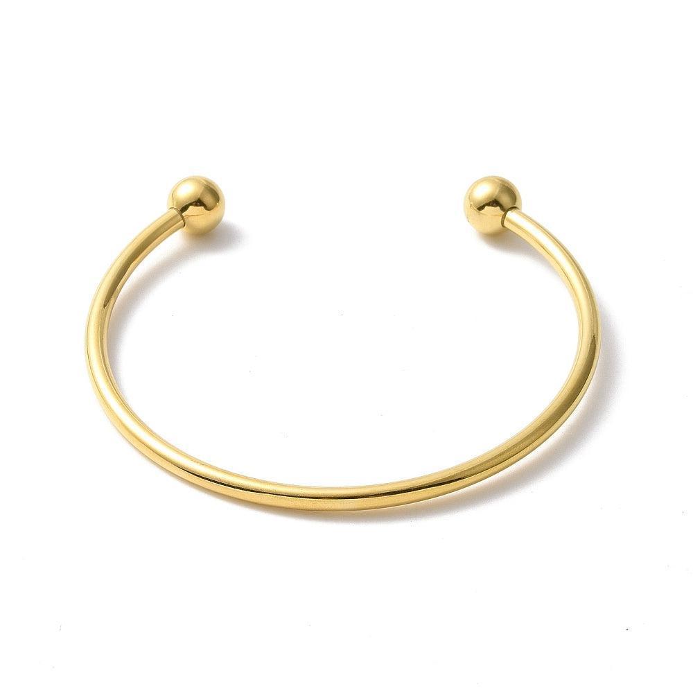 Open bangle bracelet with 2mm ball finish, 304 stainless steel, gold-plated, 60mm, x1 (G10311)
