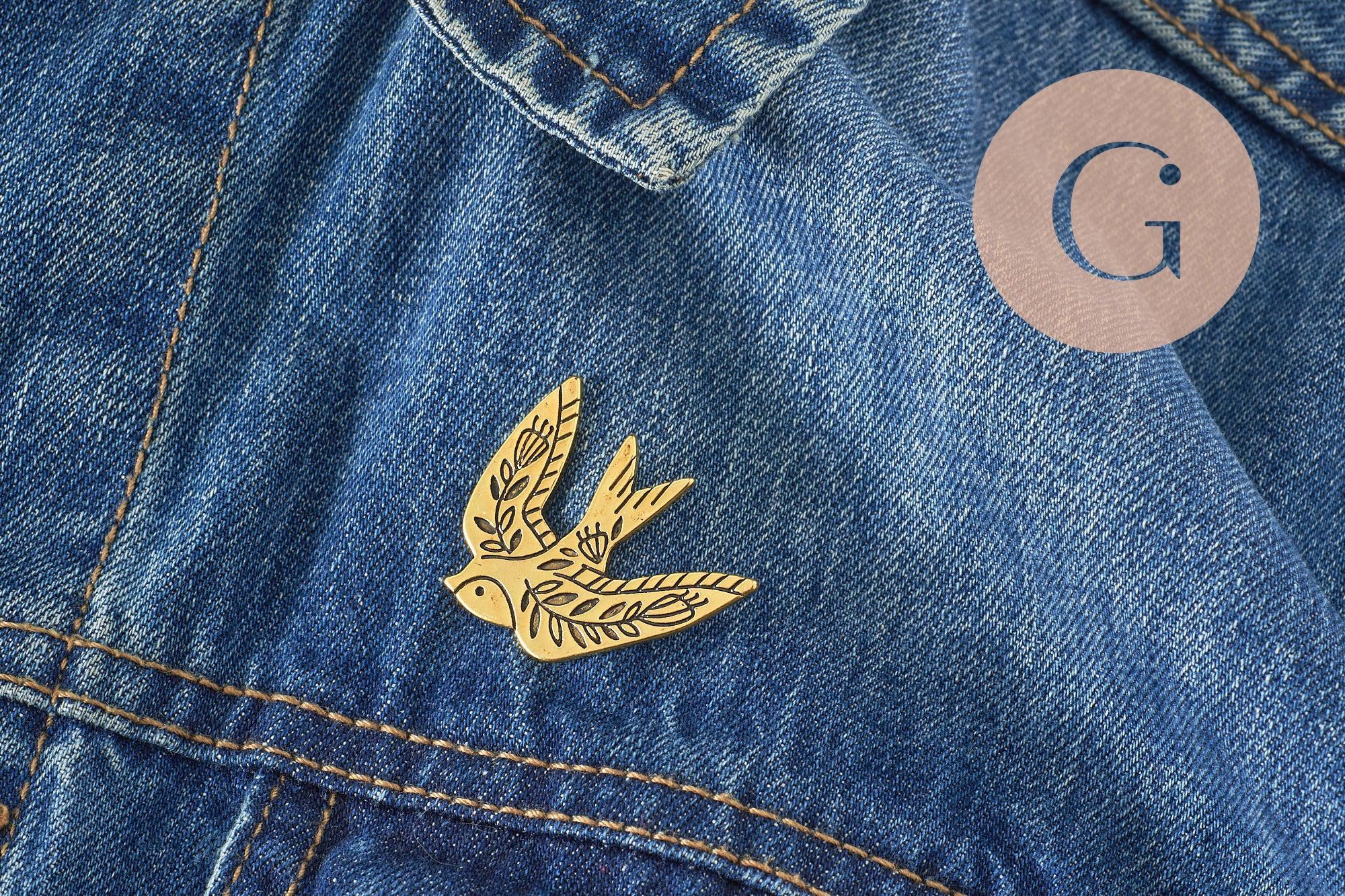 With its delicate design and vintage-style engraving, this swallow brooch is a gift idea that adds a touch of sophistication to any outfit.