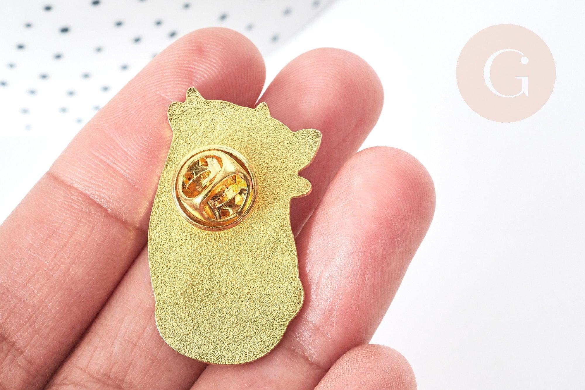 Broche Pin's Chat émail blanc et noir zamac doré 35x23mm, broche dorée, décoration veste, x1 G8082