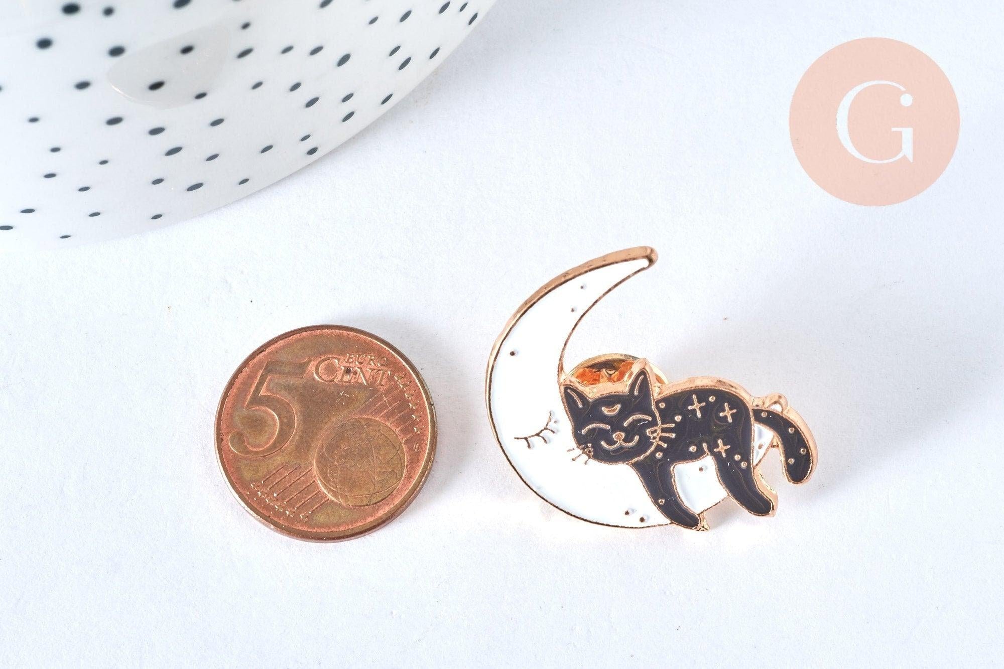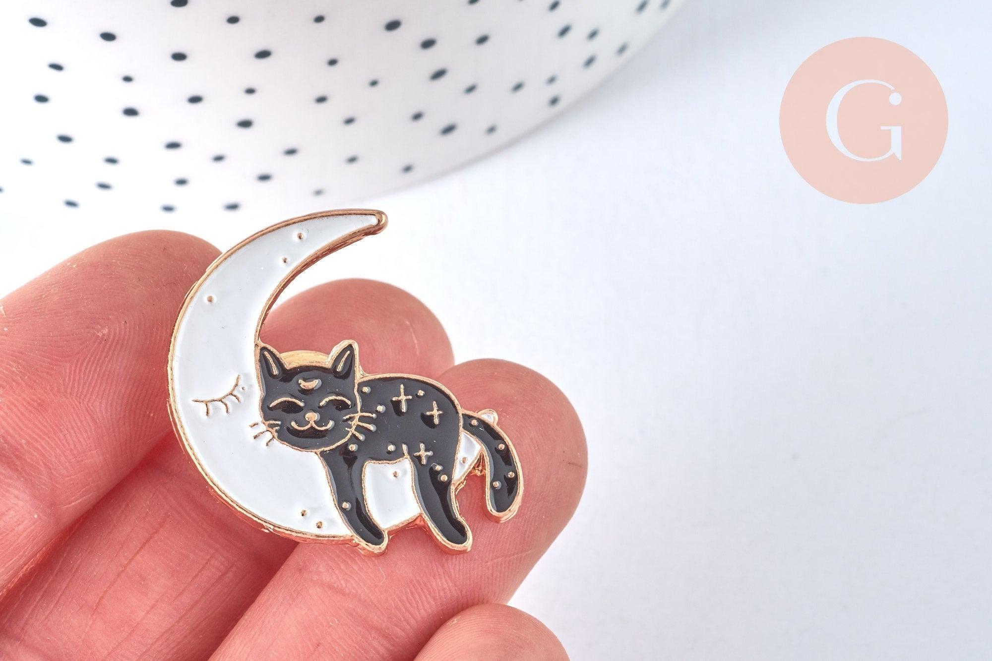 We offer you this lovely brooch / pin representing a cat sleeping on a moon.