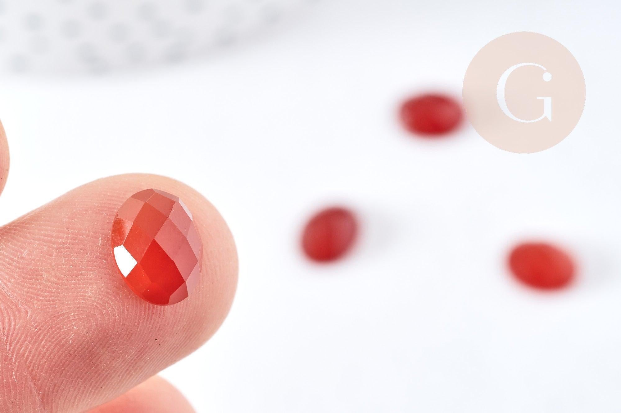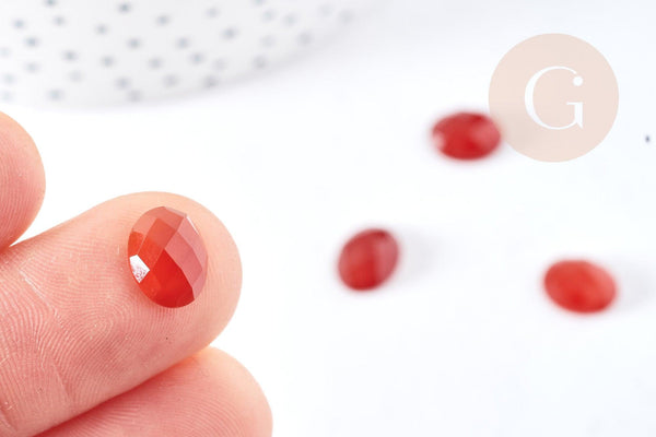 Let yourself be seduced by the dazzling beauty of this faceted orange carnelian cabochon , cut into an oval shape. This natural stone is known for its beneficial properties on the body and mind.