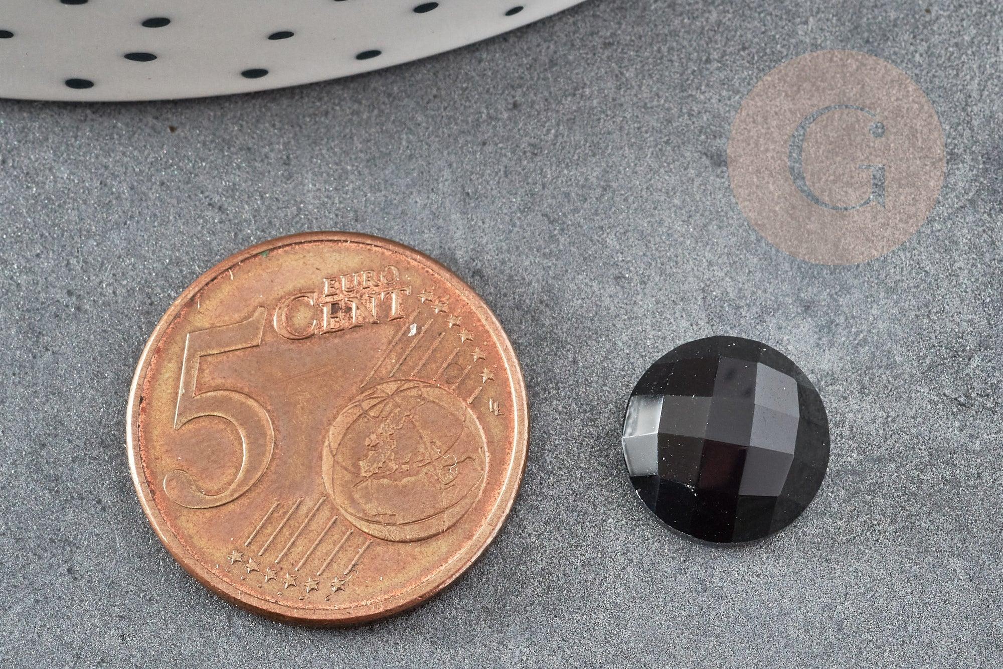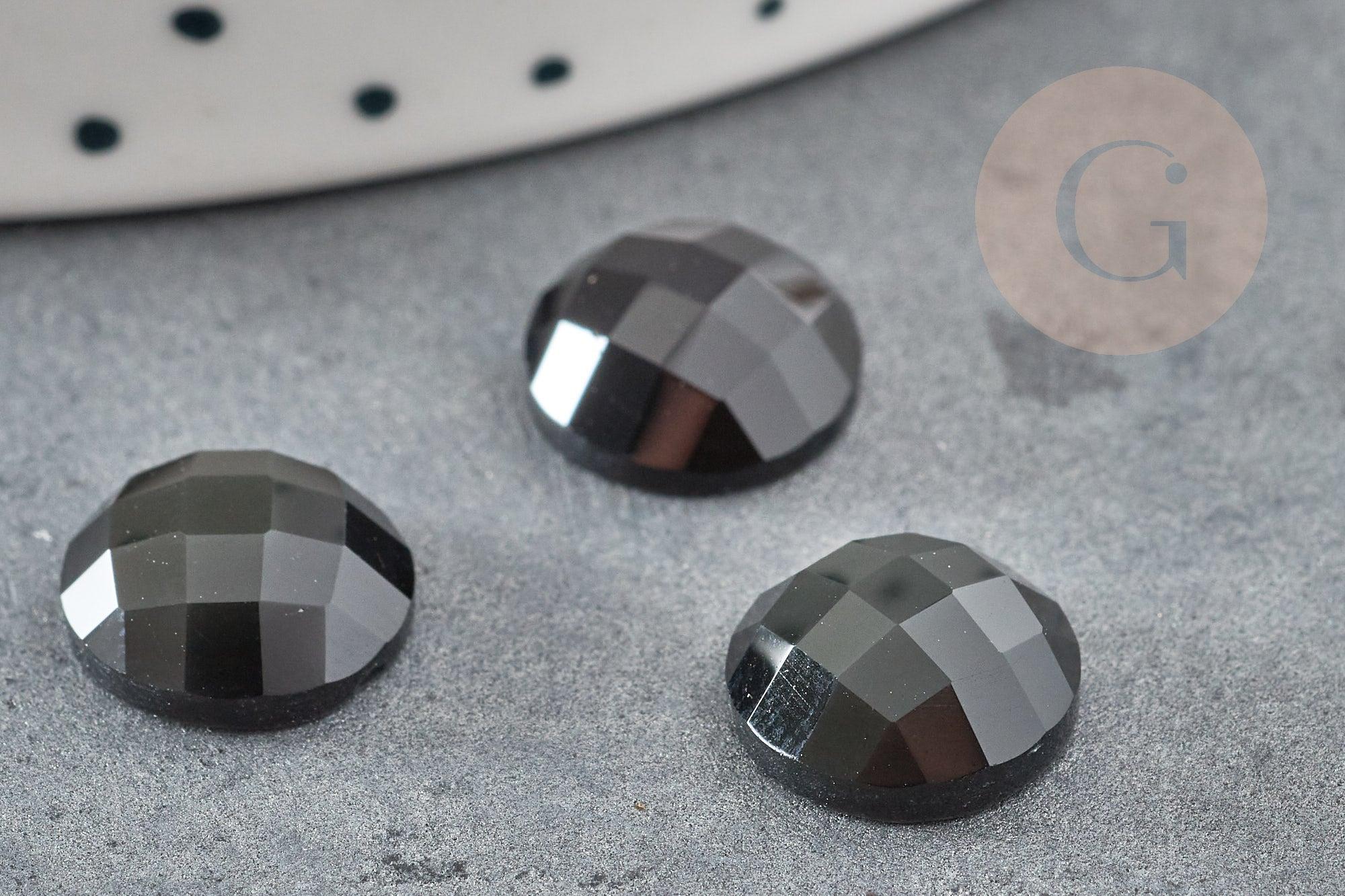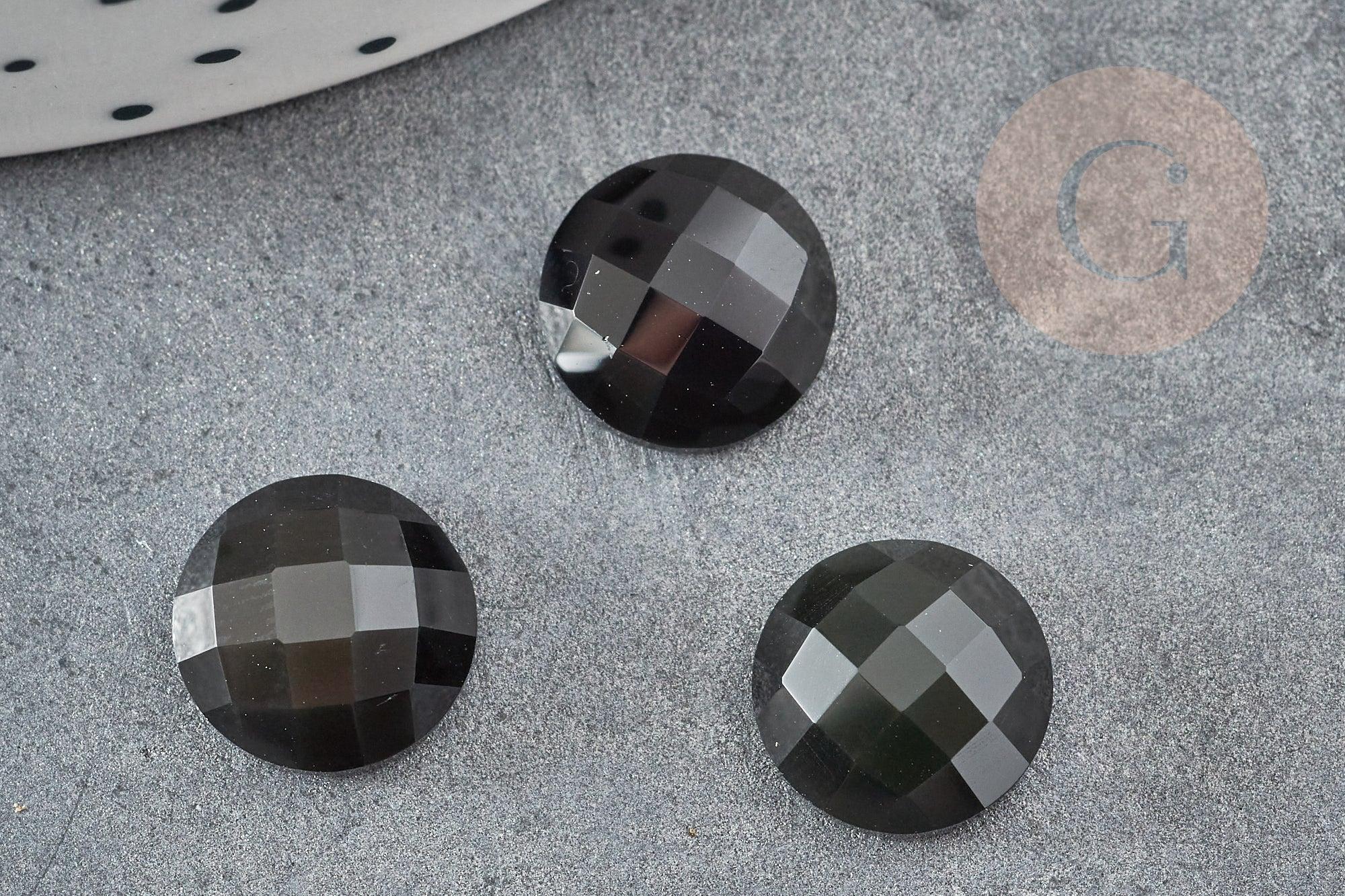 Faceted obsidian cabochon, round cabochon, natural obsidian, natural stone, stone cabochon, jewelry creation, 11mm