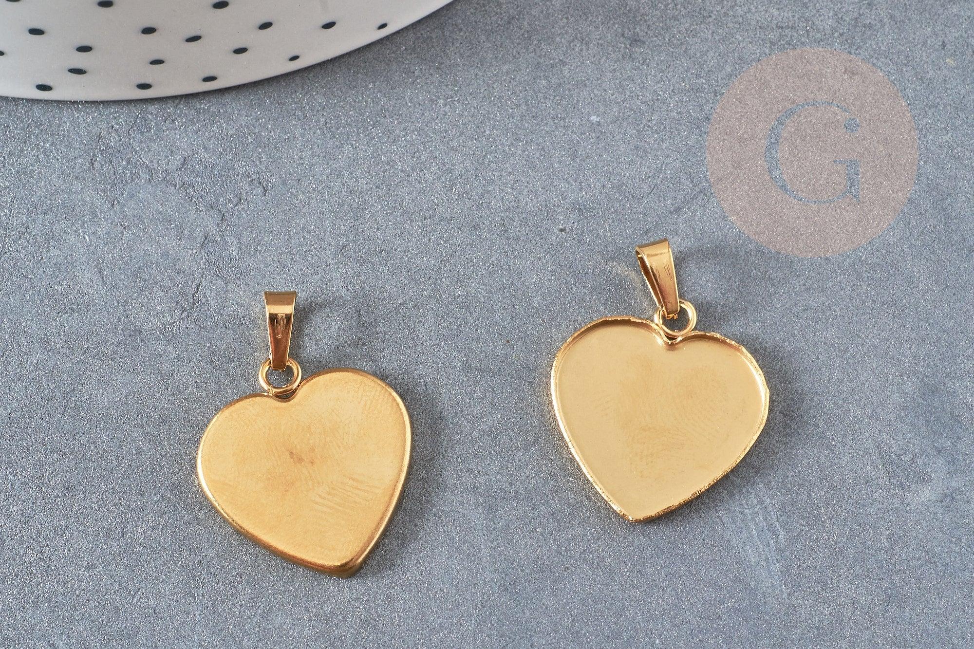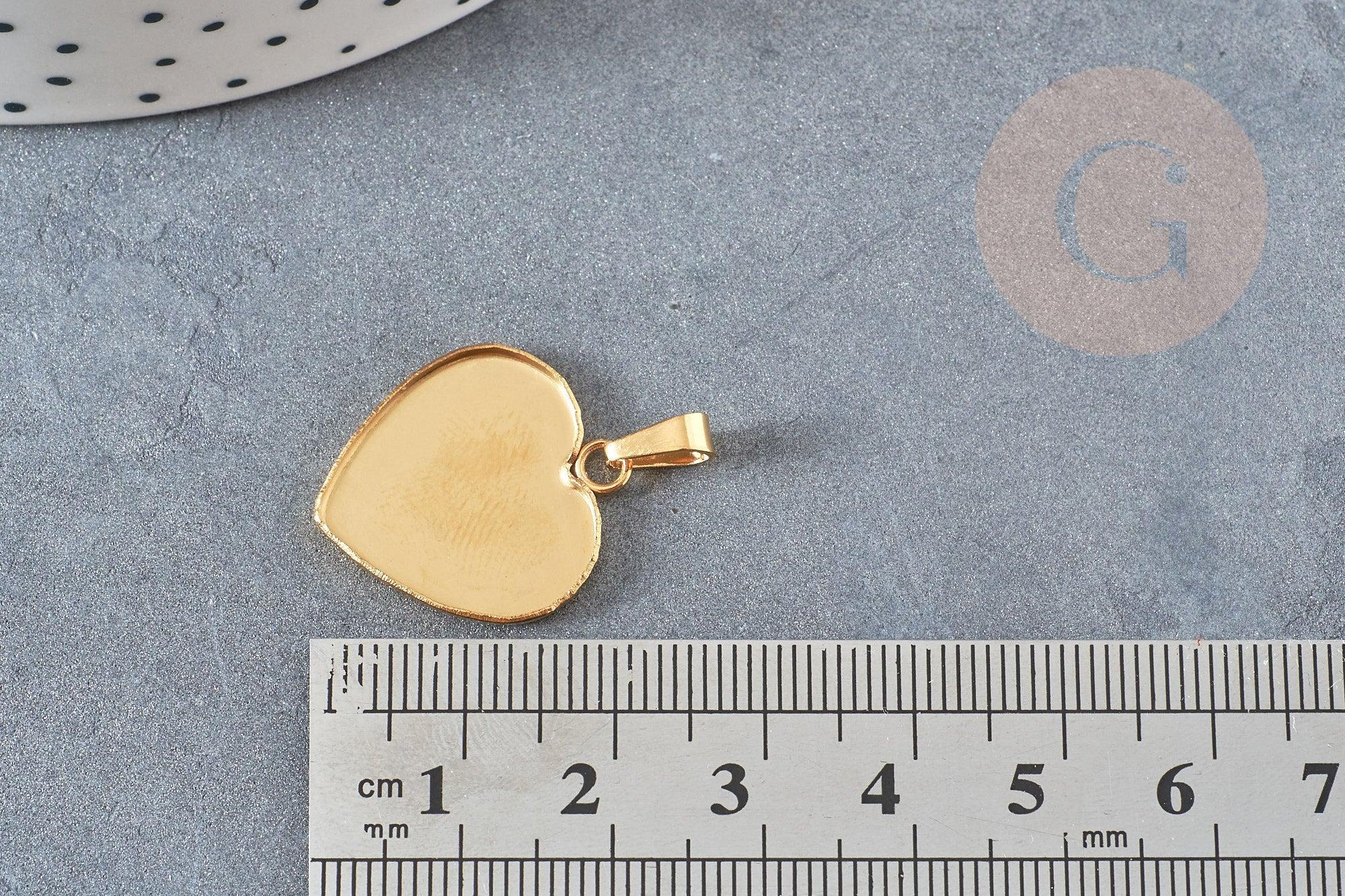 Heart pendant with gold-plated stainless steel cabochon support, gold-plated steel jewelry creations, 21.5mm each