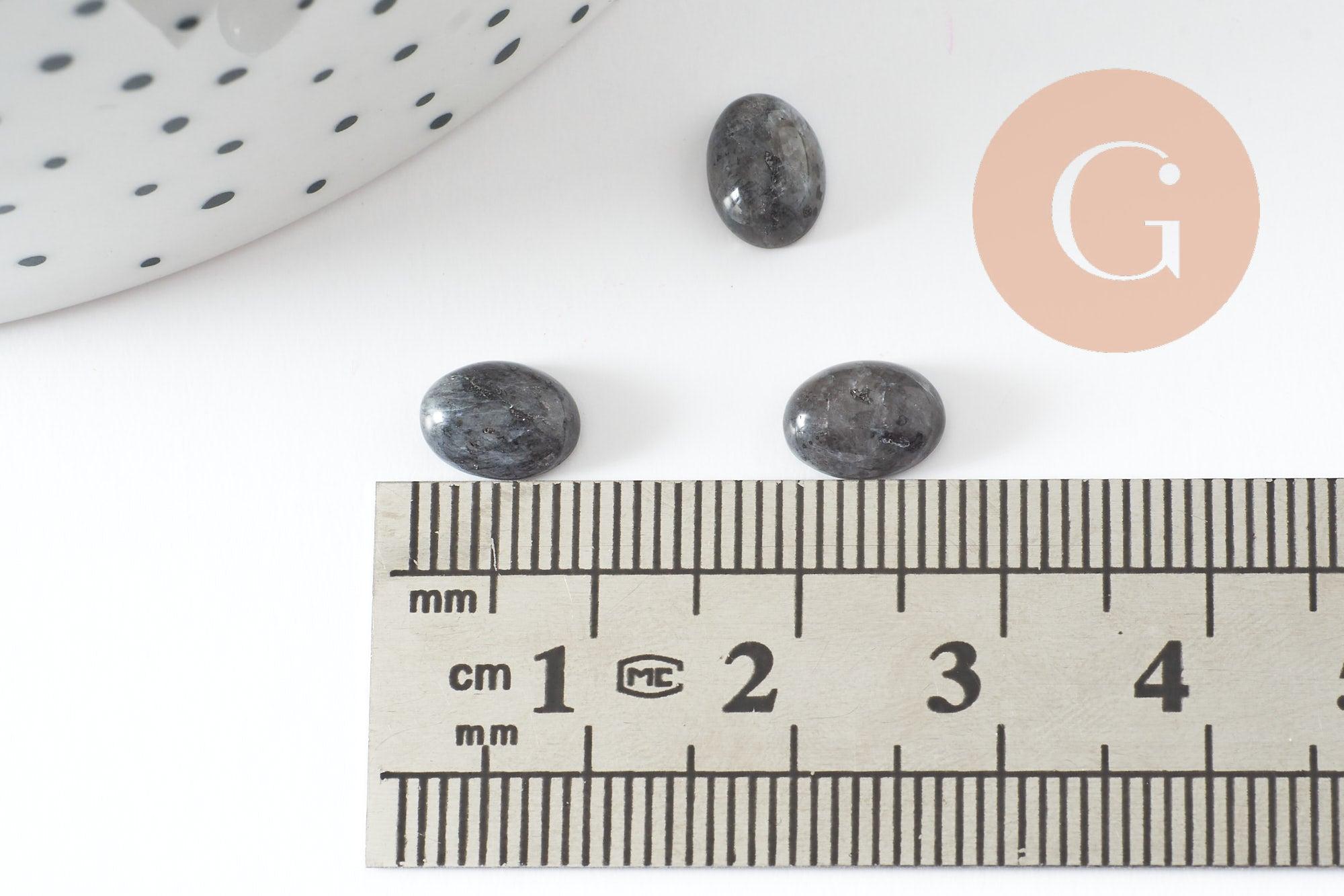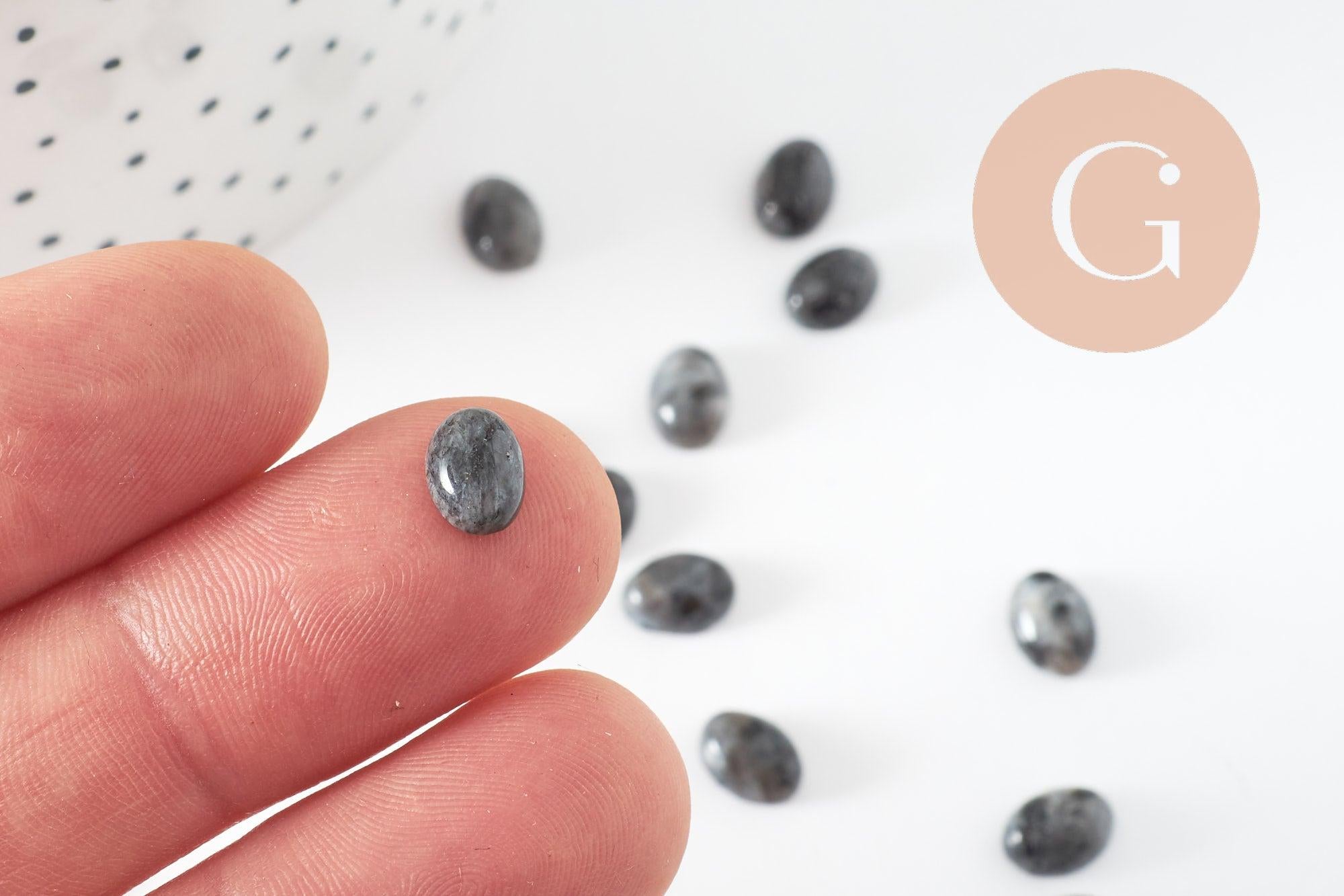 This natural larvikite oval cabochon , 8x6 mm , features shades of deep gray with subtle reflections , bringing a mysterious and elegant touch to your creations.