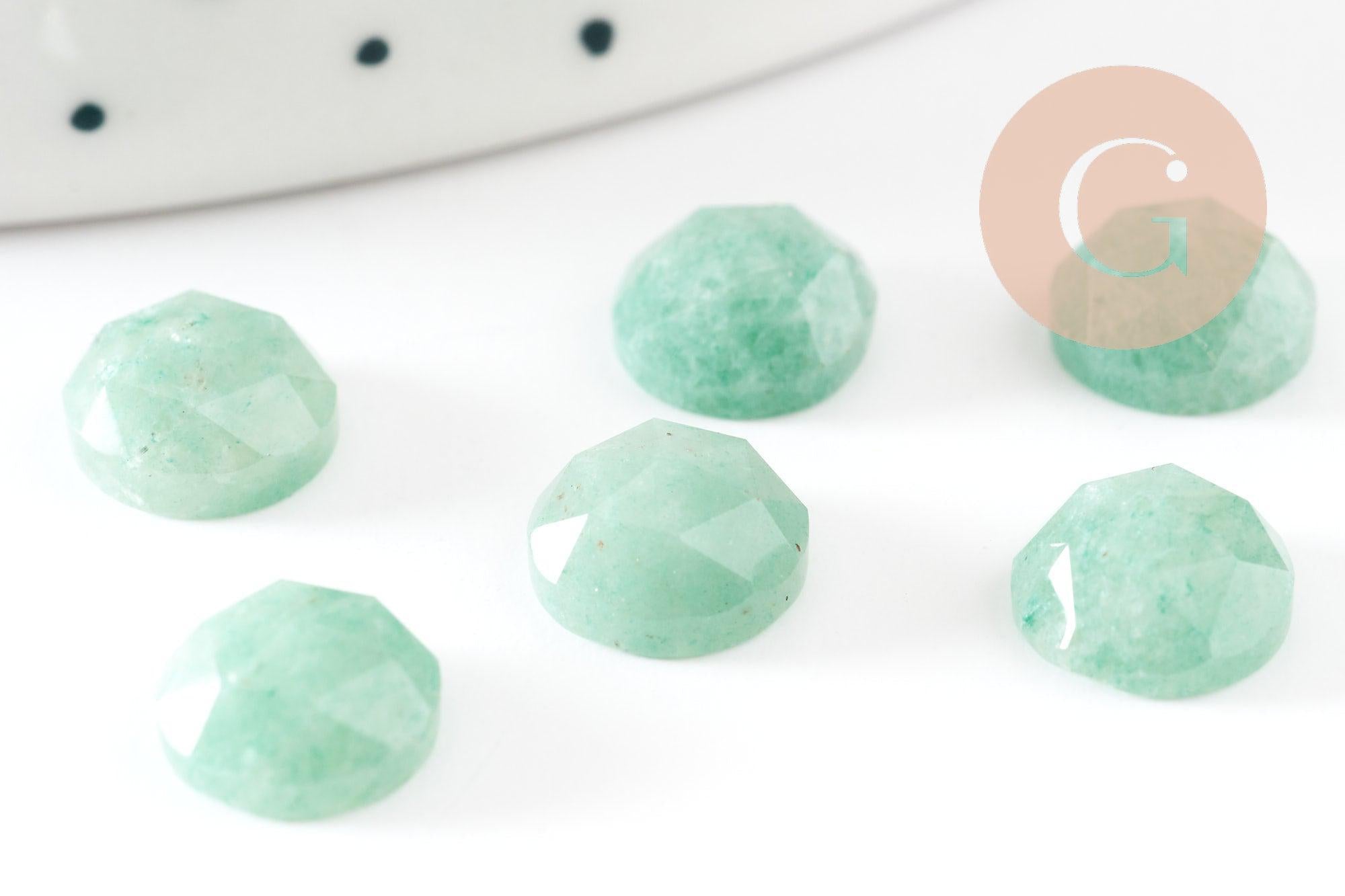 Discover our round cabochon in faceted natural aventurine . This stone with green reflections is ideal for creating elegant and refined jewelry . Use it to make rings, earrings, pendants or bracelets.