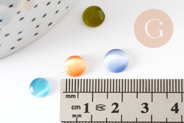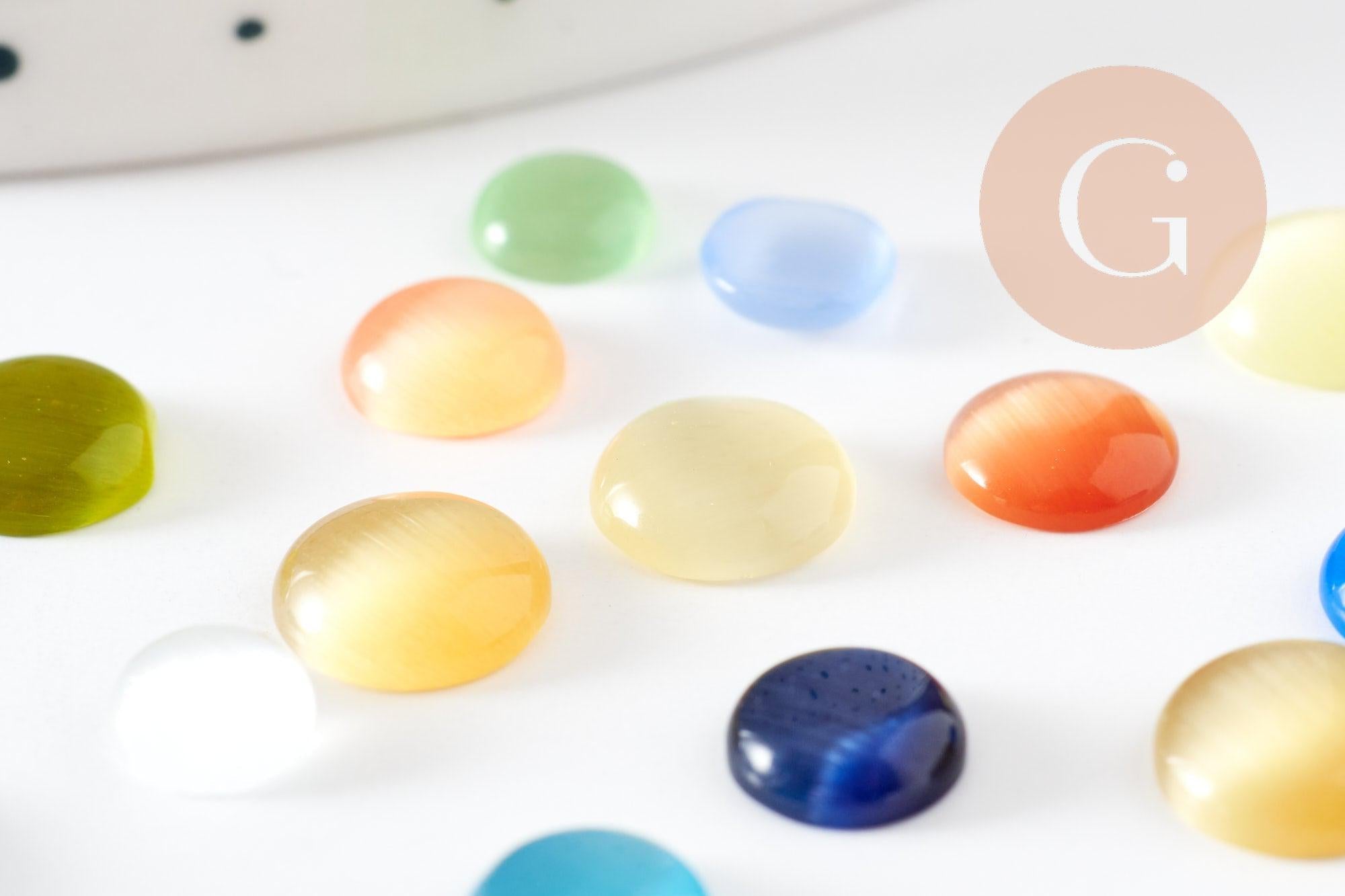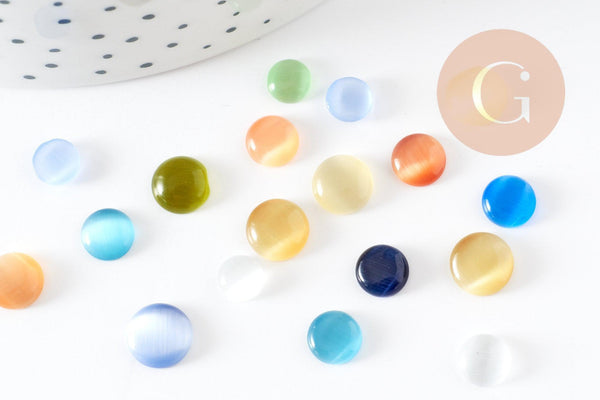 Fall for these multicolored cat's eye glass cabochons, in various sizes