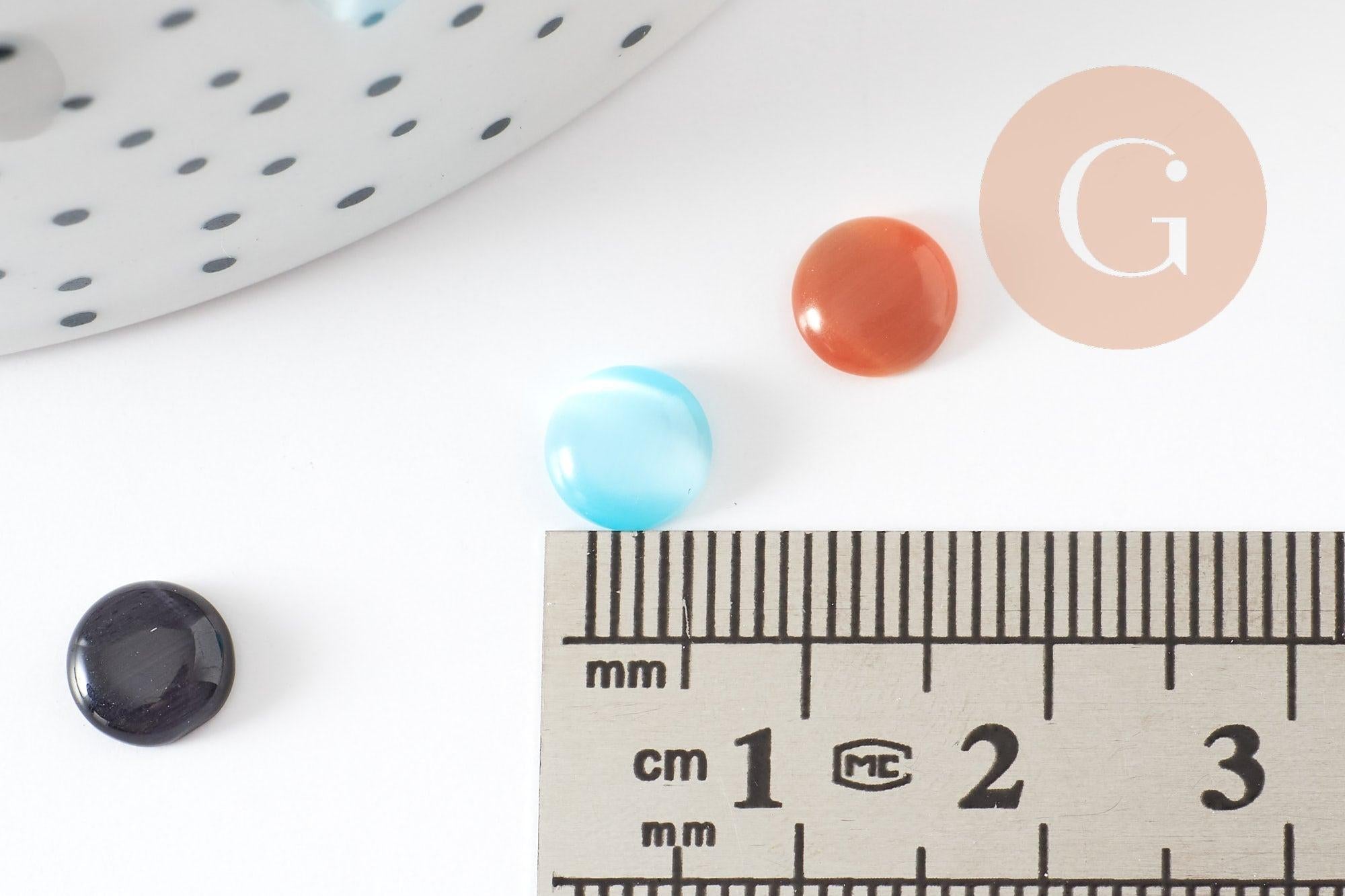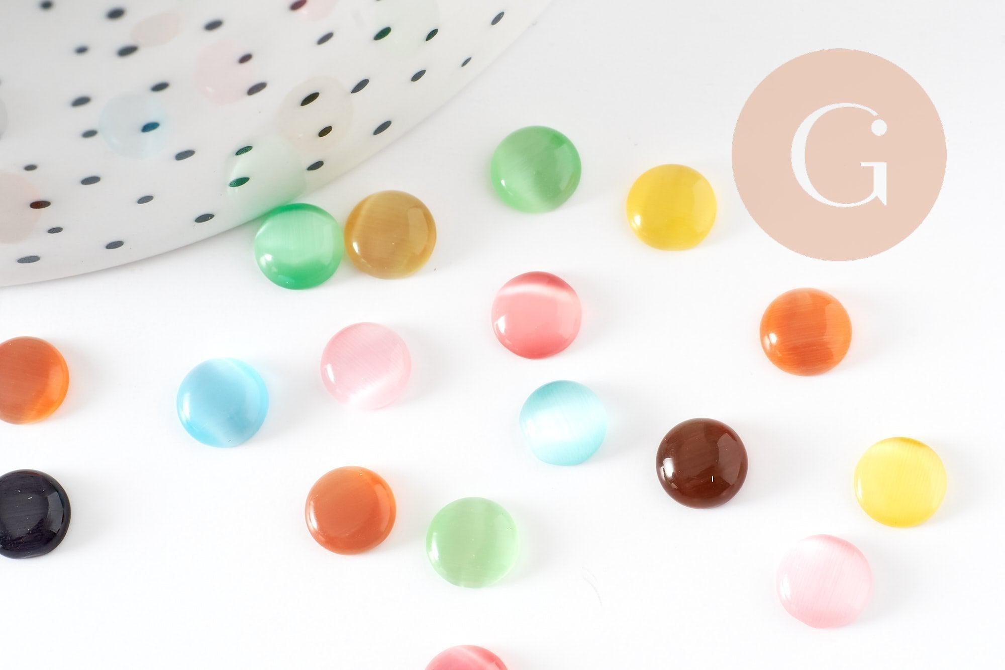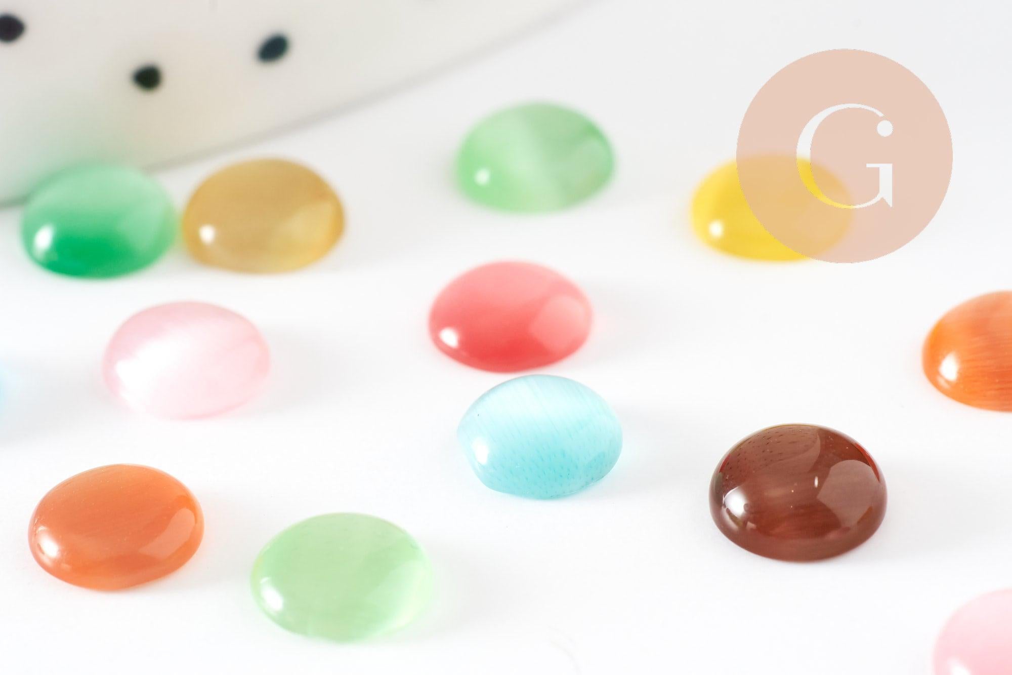 Fall for these 7mm round multicolored cat's eye glass cabochons