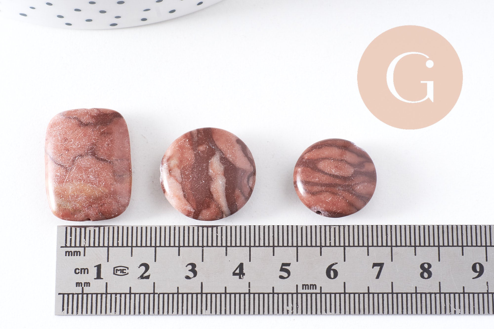 Enhance your creations with these natural brown zebra jasper beads , each unique in its shape and veining. This set of 5 beads offers a mix of varied shapes (small and large discs, rectangular), ideal for giving character to your DIY jewelry.