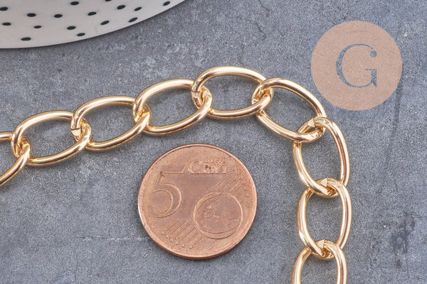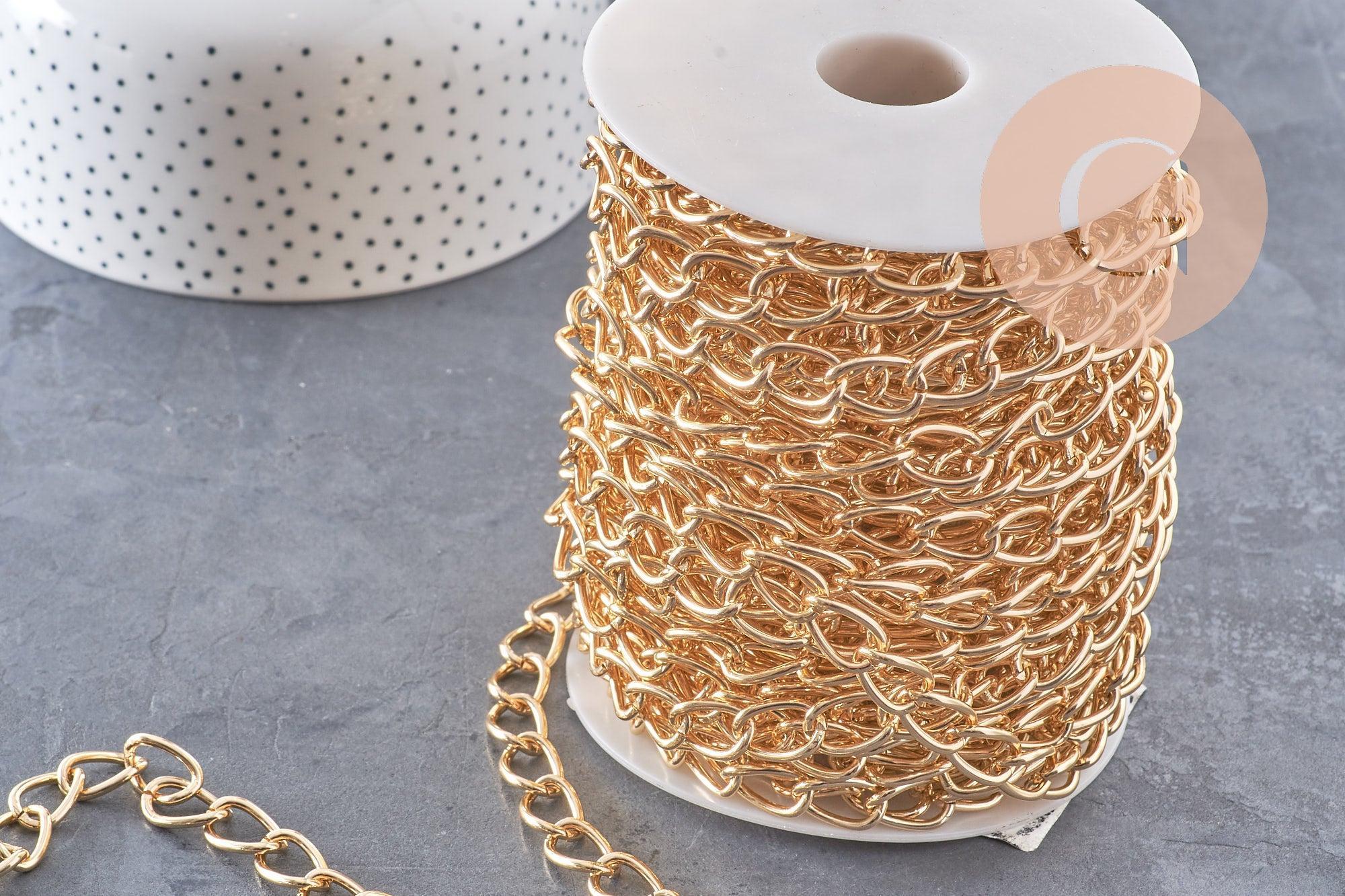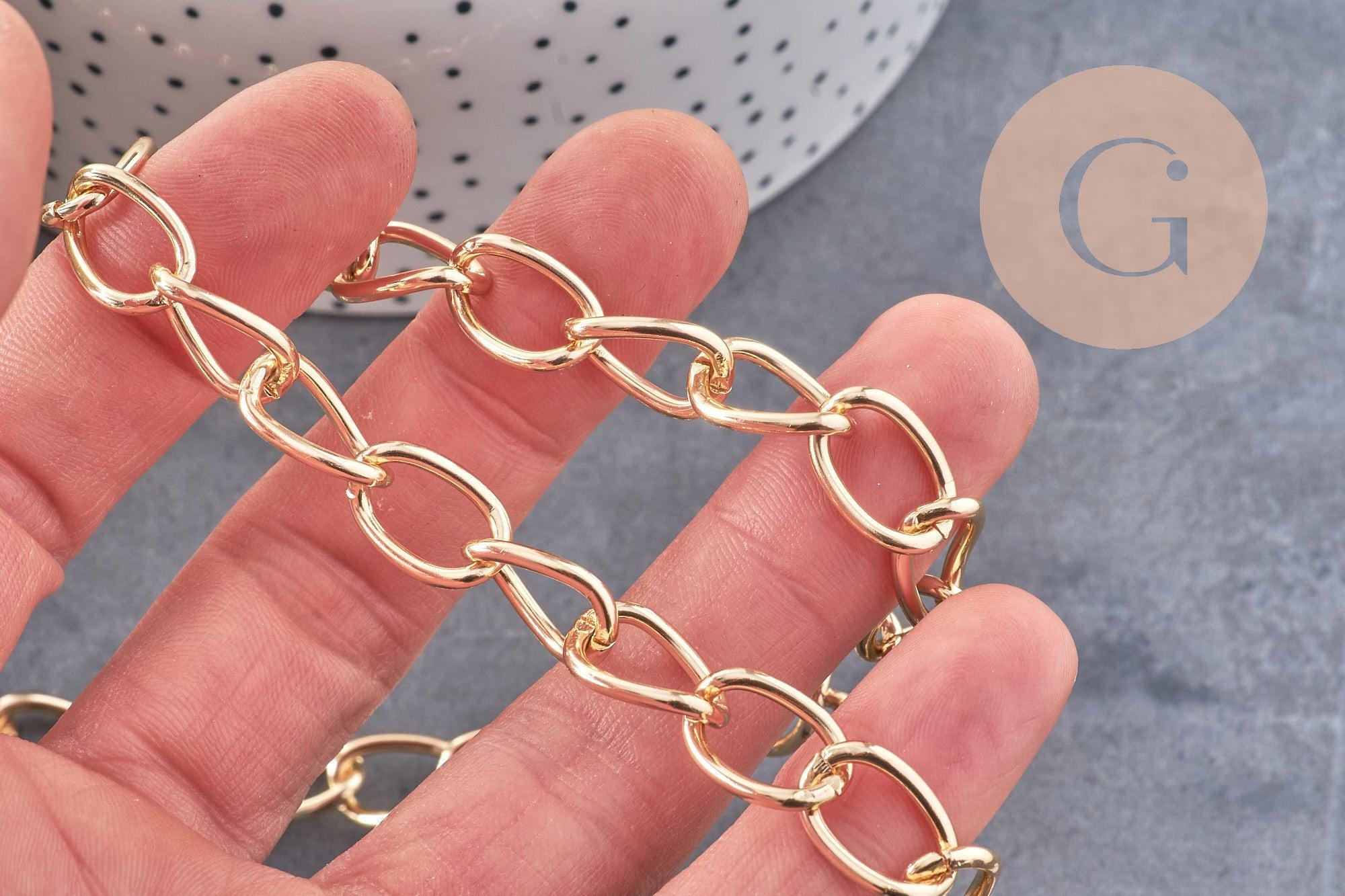 Gold chain, large gold aluminum mesh, necklace chain, jewelry creation, wide chain, 15x10x2mm, sold by the meter