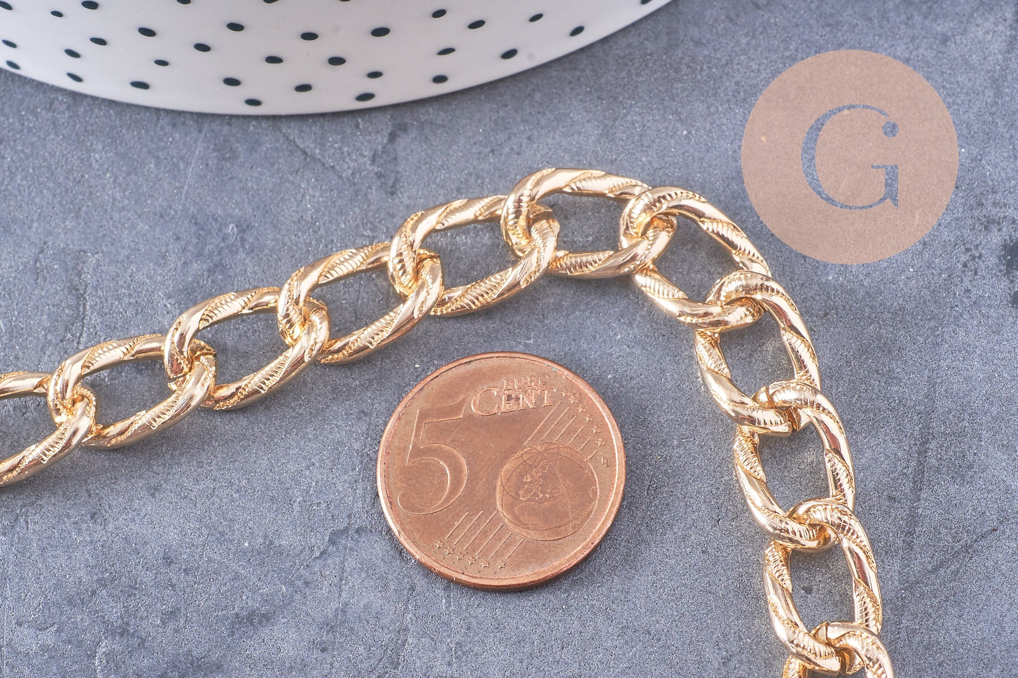 Add a bold, on-trend touch to your designs with this chunky, textured, oval link chain in gold-tone aluminum . With its large 15mm links , it's perfect for creating statement pieces like chunky necklaces, oversized bracelets, or modern earrings.