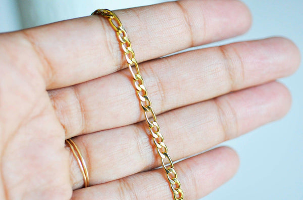 A beautiful thick figaro chain in gold-plated steel to create very trendy costume jewelry.