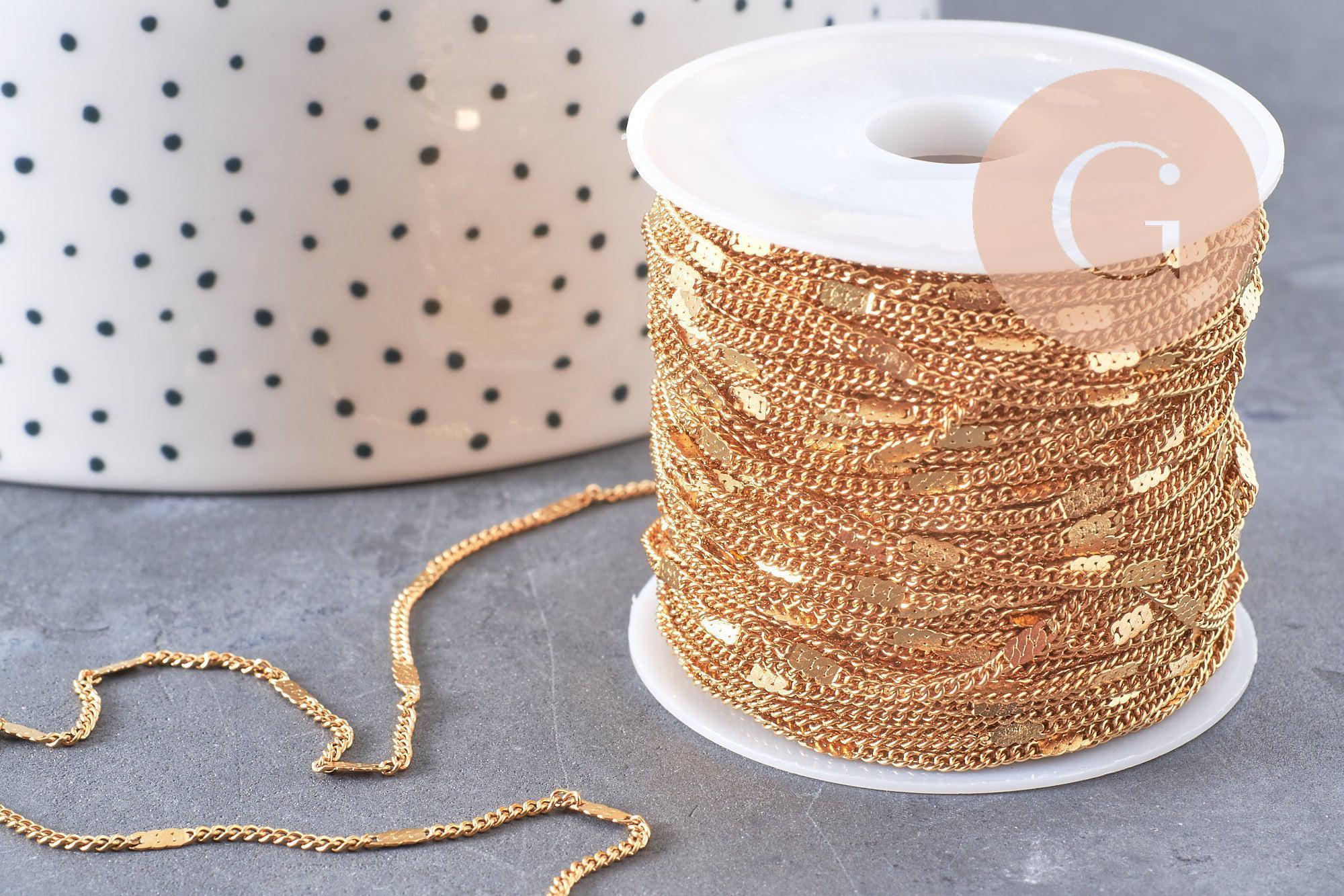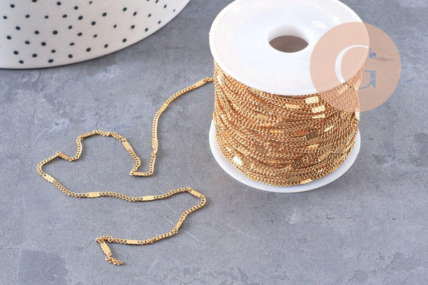 Chaine fine plate dorée acier 304 inoxydable fantaisie 14K 2mm, x1 mètre (G3458)