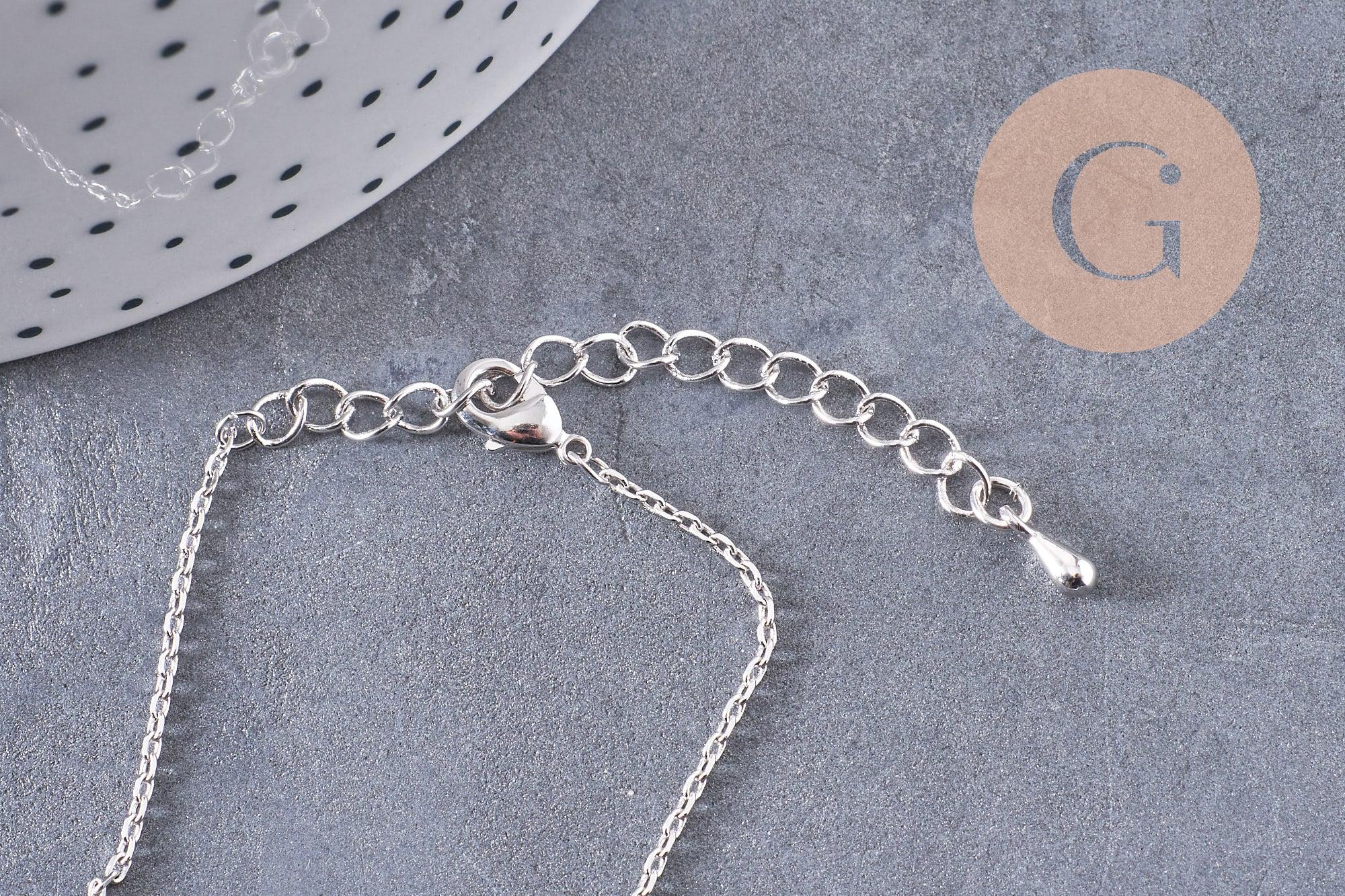 A brass chain gilded with white gold (Rhodium), known for being a very resistant metal. Sold complete with clasp and extension chain also gilded with Rhodium