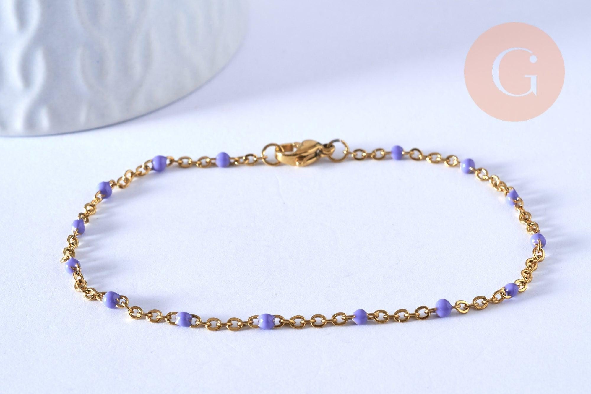 Bracelet ou collier acier doré 14k résine lilas 1.5mm-20.5cm, x1 (G3598)