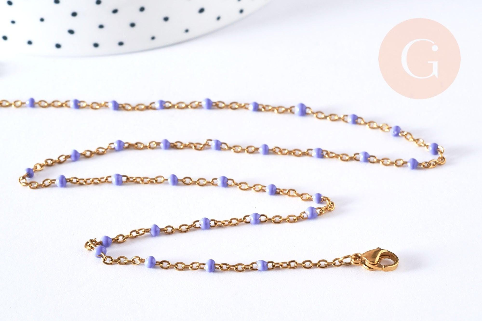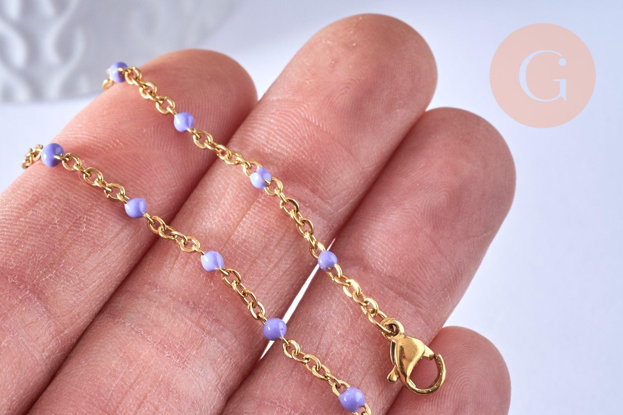 14k gold-plated steel bracelet or necklace with lilac resin 1.5mm-20.5cm, x1 (G3598)