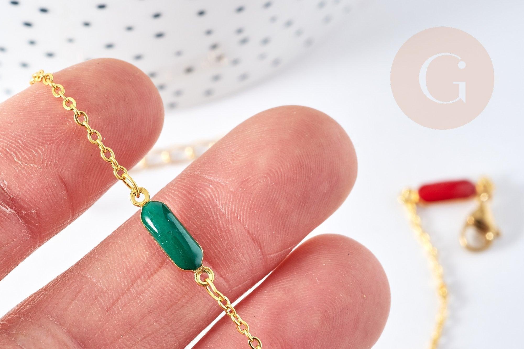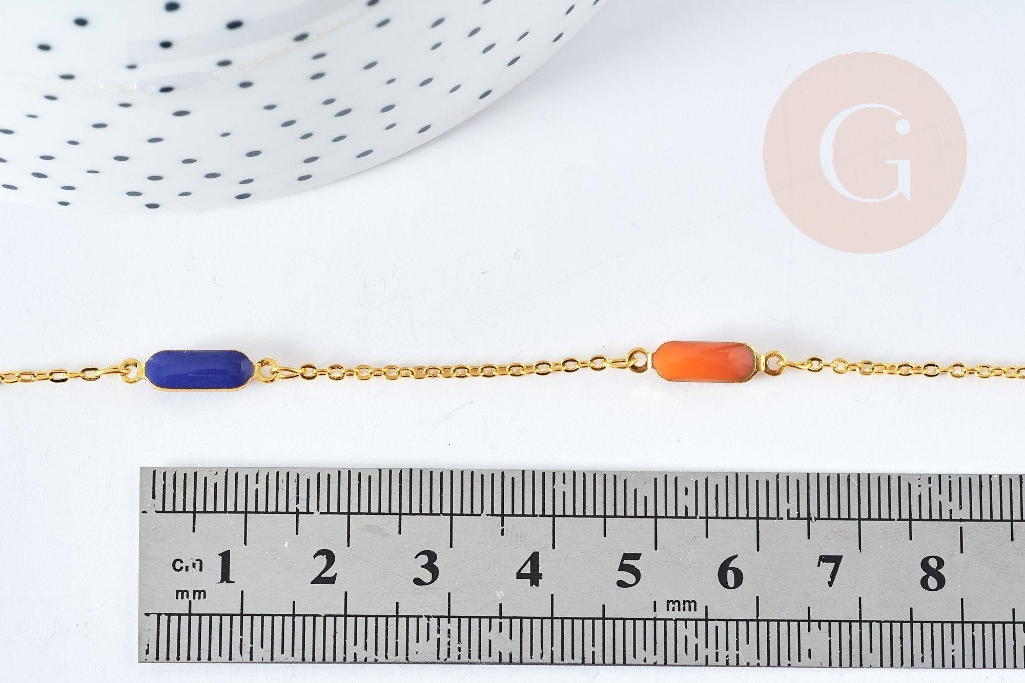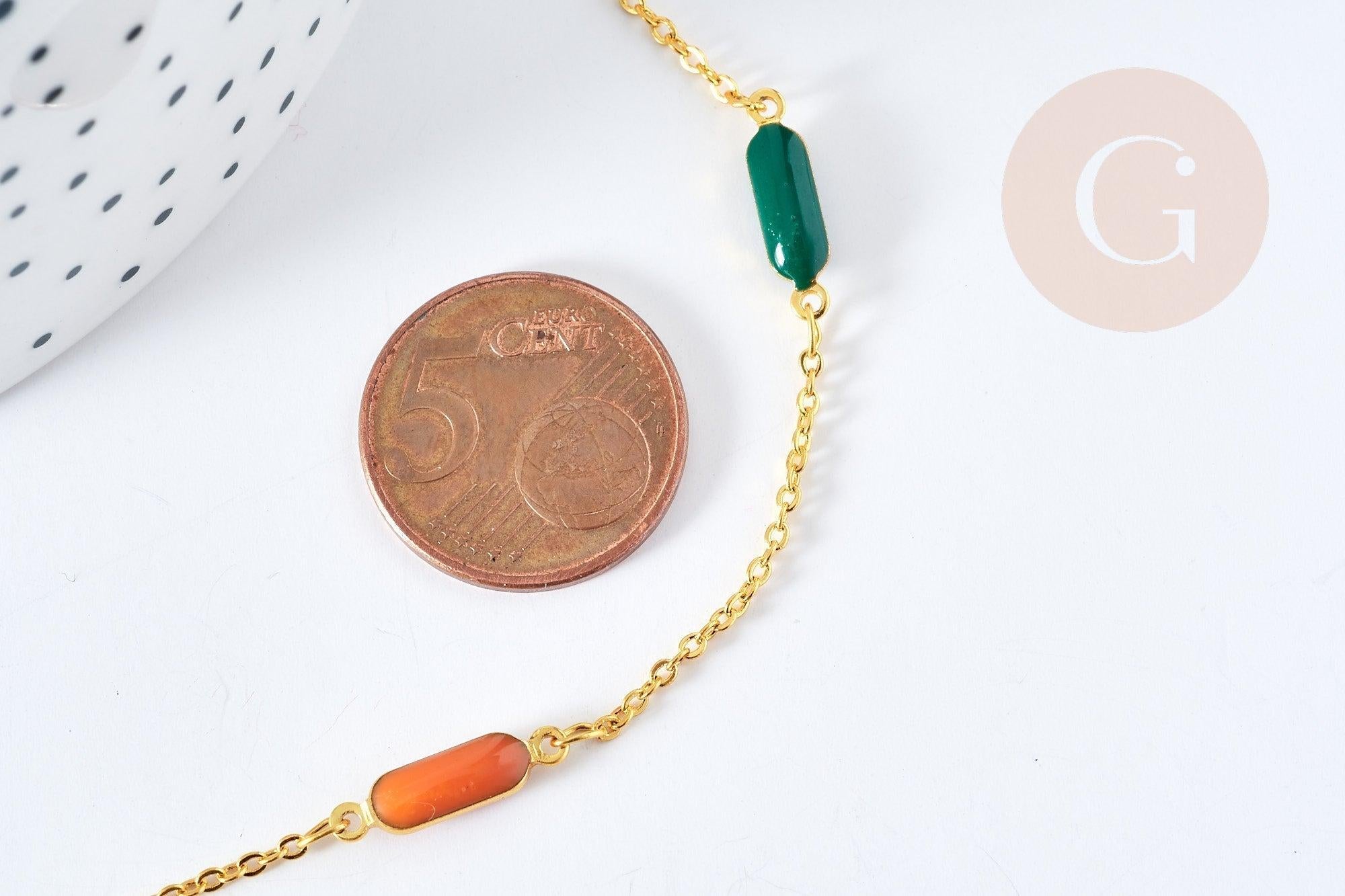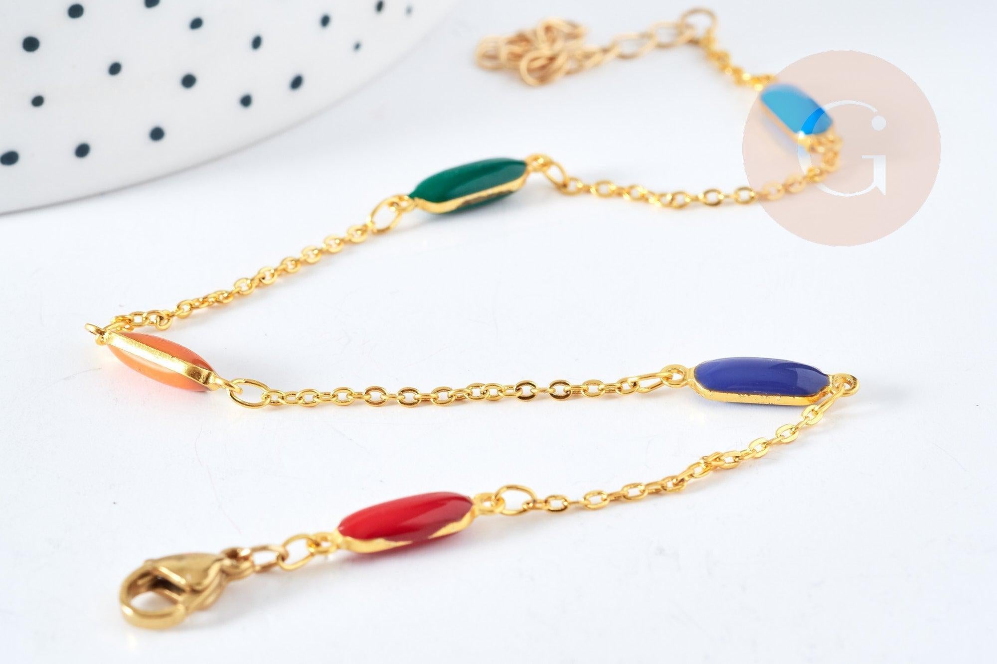 Bracelet chaine de cheville géométrique laiton doré émaillé multicolore 23.7mm, x1 (G8795)