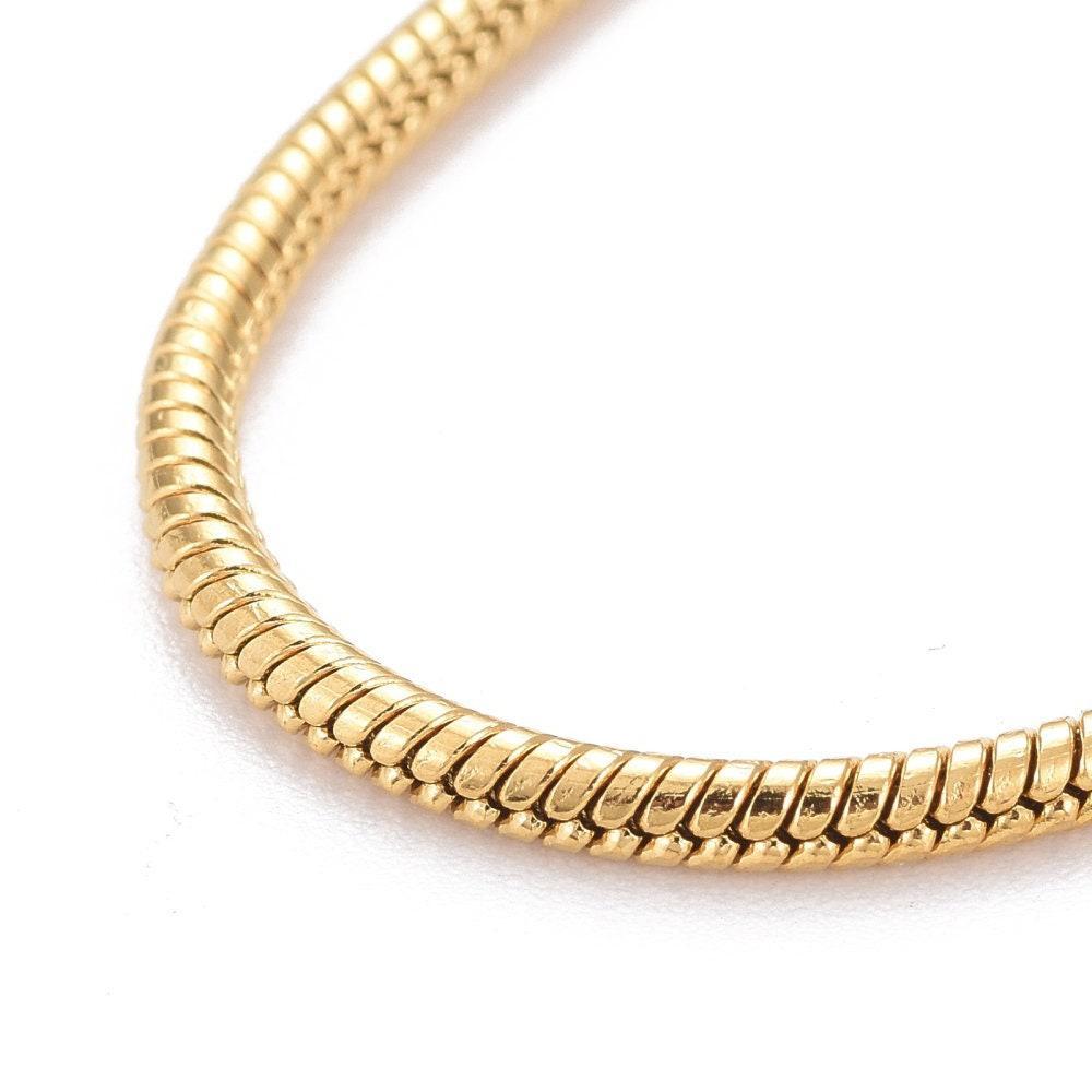 Bracelet réglable chaine serpent acier inoxydable doré, fermoir frein, sans nickel, 14k 2mm/ 27cm, x1 (G5496)