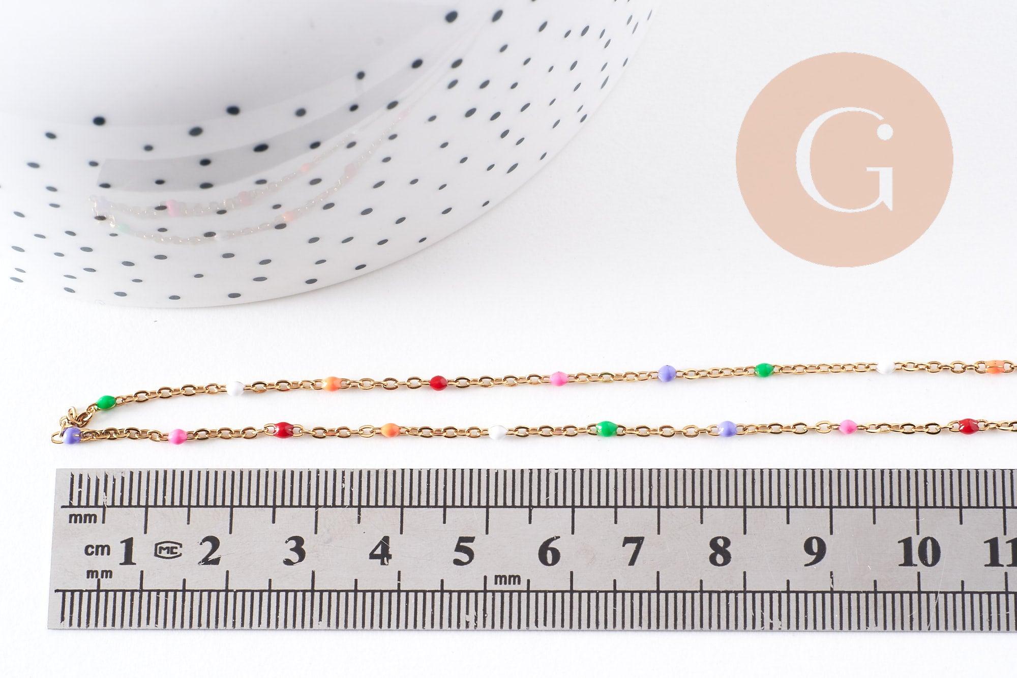Fall for this fine chain in 14K gold-plated 304 stainless steel , adorned with white resin for a luminous and refined touch. Its delicate and timeless design makes it a perfect piece of jewelry to wear alone or to enhance with a pendant. Thanks to its stainless steel design, this chain is durable, water-resistant and does not tarnish , guaranteeing long-lasting shine.