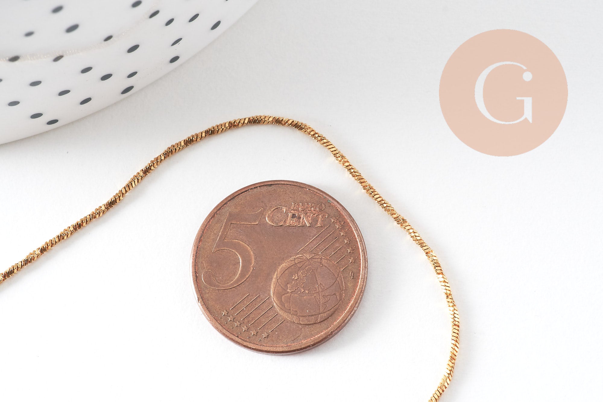 Bring a touch of timeless elegance to your creations with this 14K gold-plated stainless steel snake chain , lightly twisted for a luminous and refined effect. Its fluid and fine design makes it a must-have for a minimalist and sophisticated look.