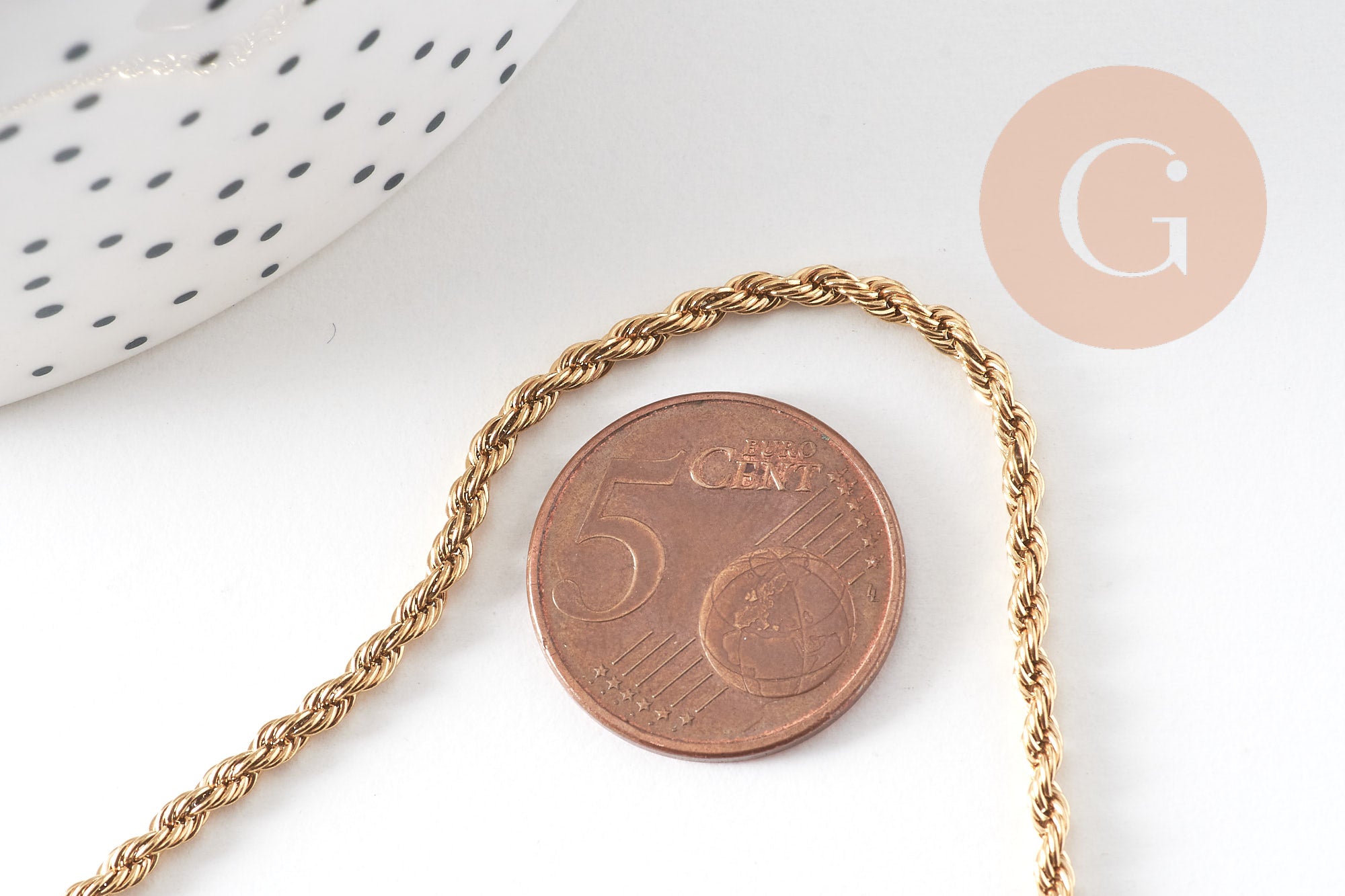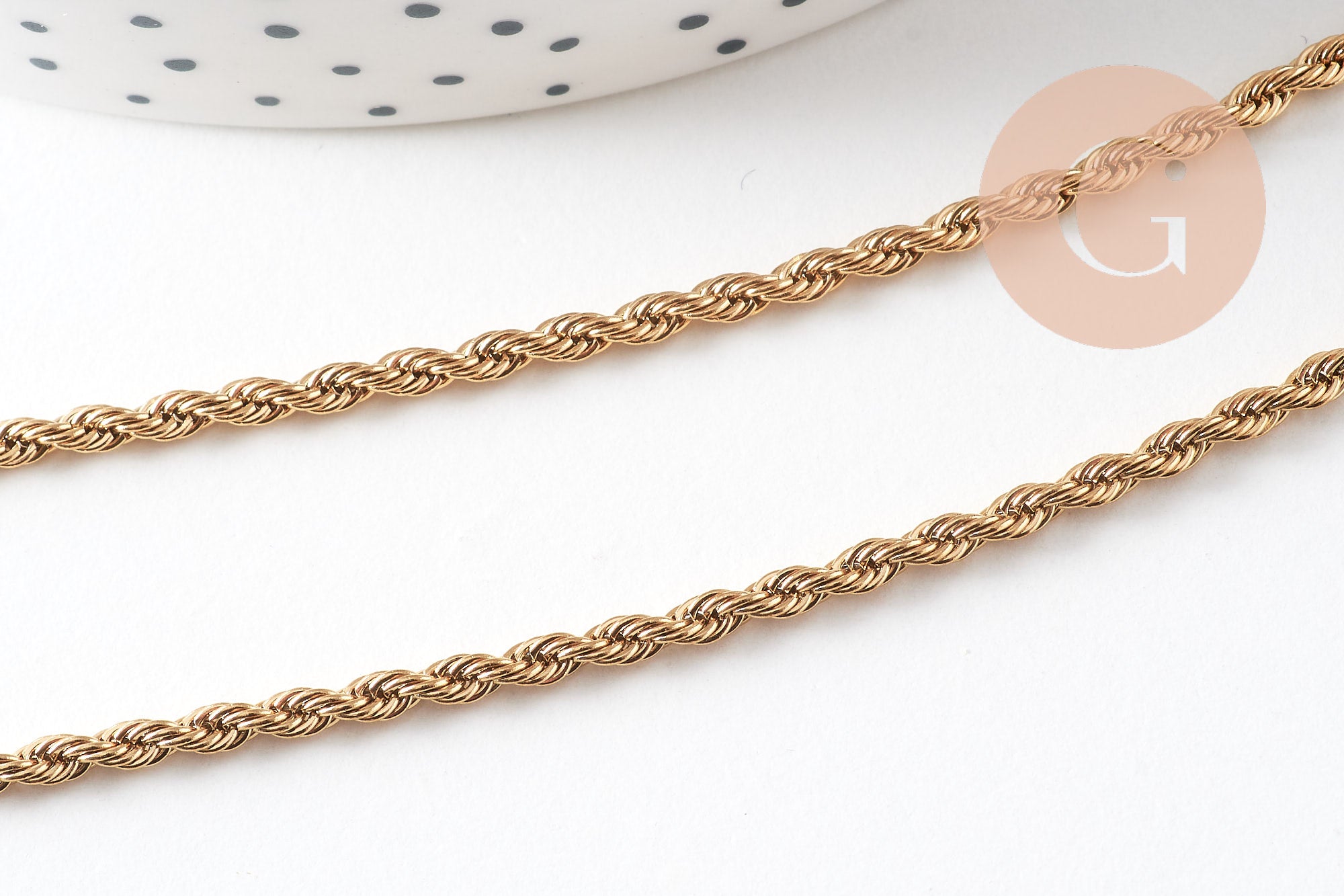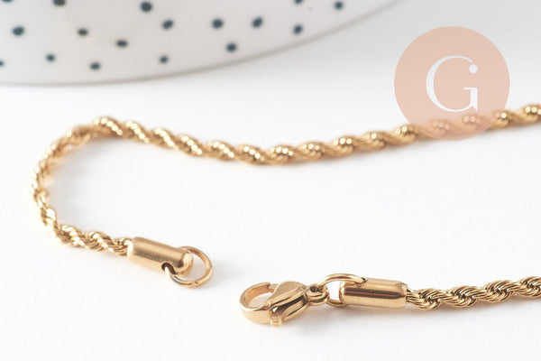 Chaine avec fermoir torsadée acier inoxydable doré 14k 2.5mm/50cm x1 (G1474)