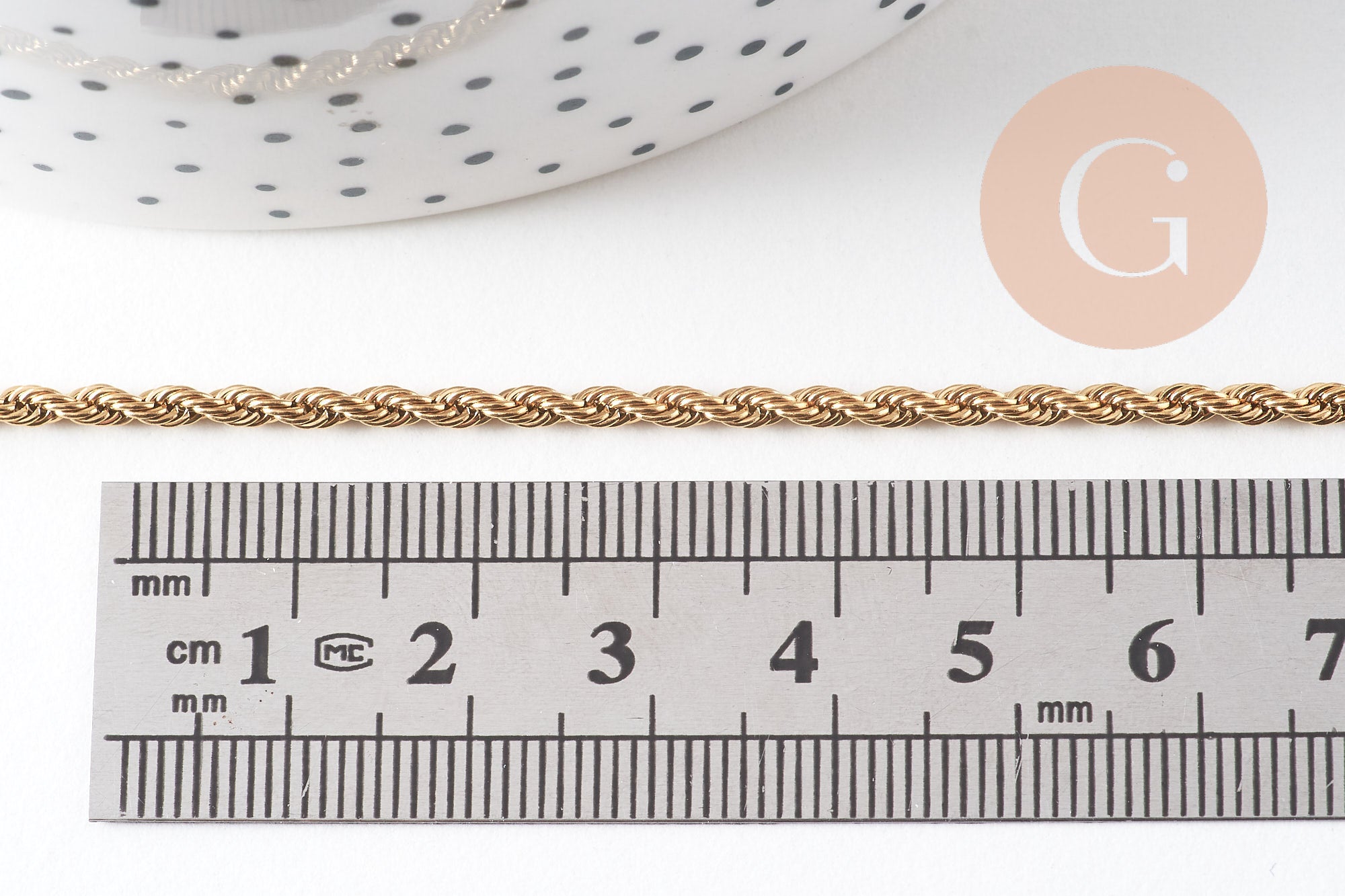 This 14k gold-plated stainless steel twisted chain measures 50 cm in length and has a diameter of 2.5 mm , offering a refined finish and exceptional robustness.
