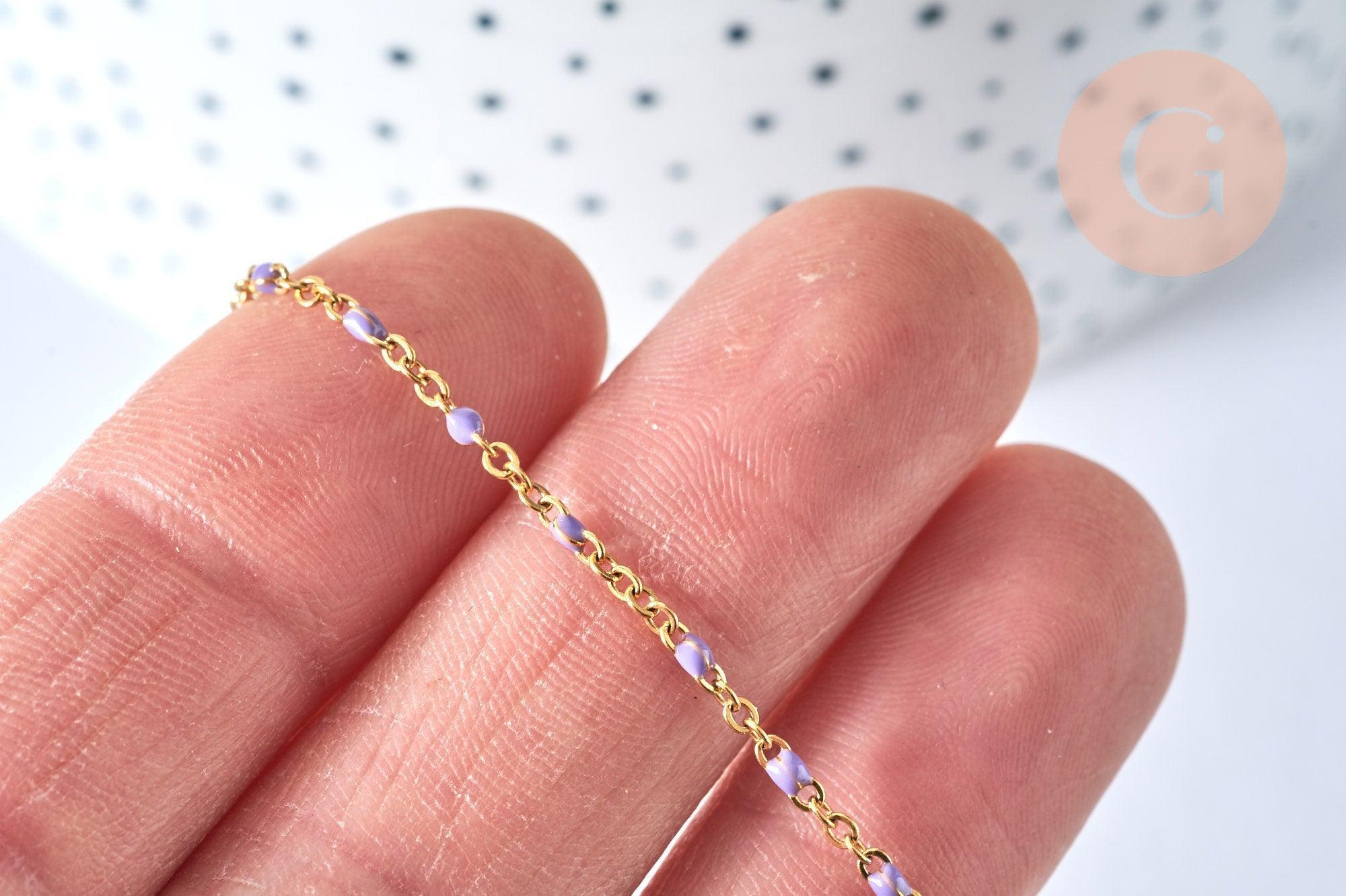 Complete chain attached with a clasp and having purple resin here and there, in 14 carat gold 0.25 micron; this will be ideal for your various fancy creations such as fancy necklaces , trendy sautoir, chic bracelets and elegant earrings.