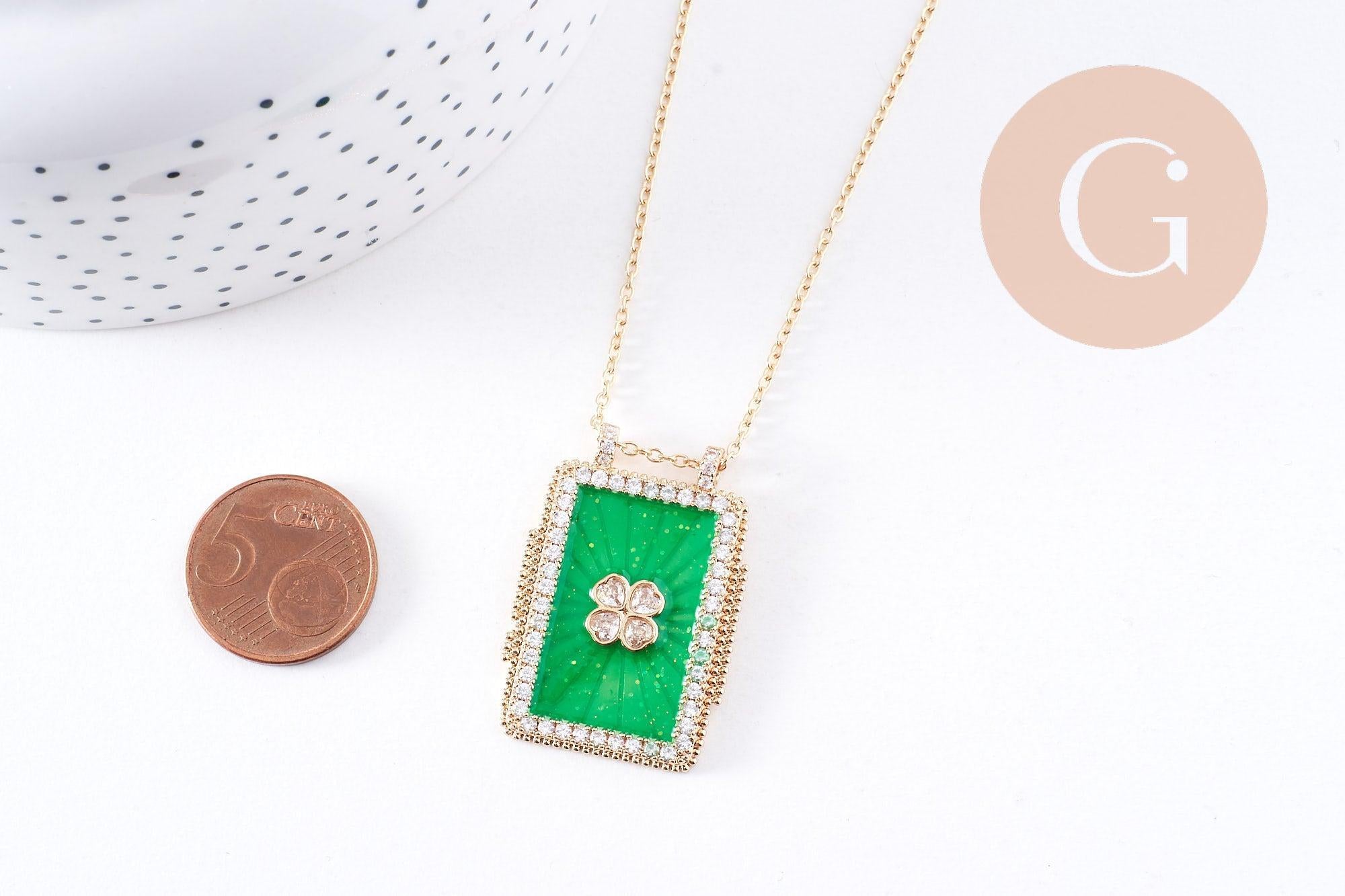 A chic lucky charm, this necklace features a green enameled gold-plated zamac medallion adorned with sparkling white zircons. Mounted on a refined braided cord, it combines elegance and symbolism to enhance any outfit.
