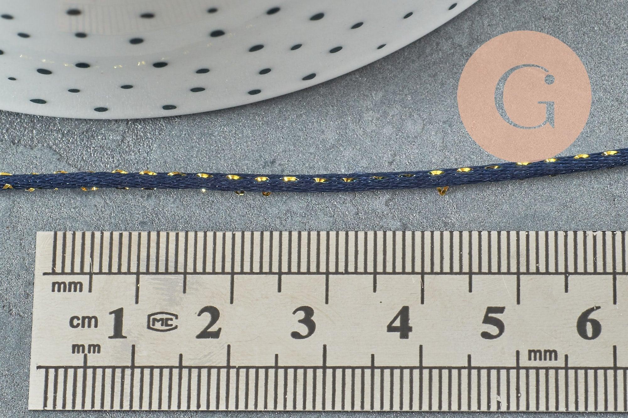 Add an elegant and luminous touch to your creations with this navy blue nylon rattail cord subtly enhanced with a metallic gold thread . Supple, durable, and slightly satiny, it's ideal for a multitude of uses: making jewelry, accessories, decorations, or craft projects.