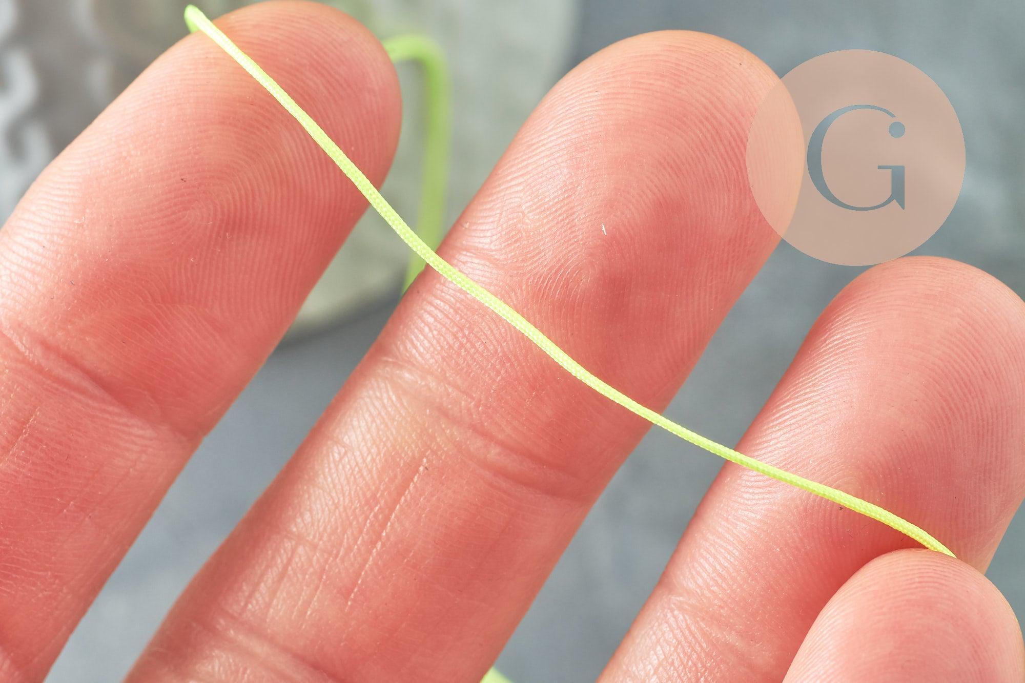 This 0.6mm braided polyester fluorescent yellow jade thread provides strength and flexibility with a vibrant, contemporary color. It's an essential jewelry making supply and is available in a variety of colors and sizes to suit your projects.