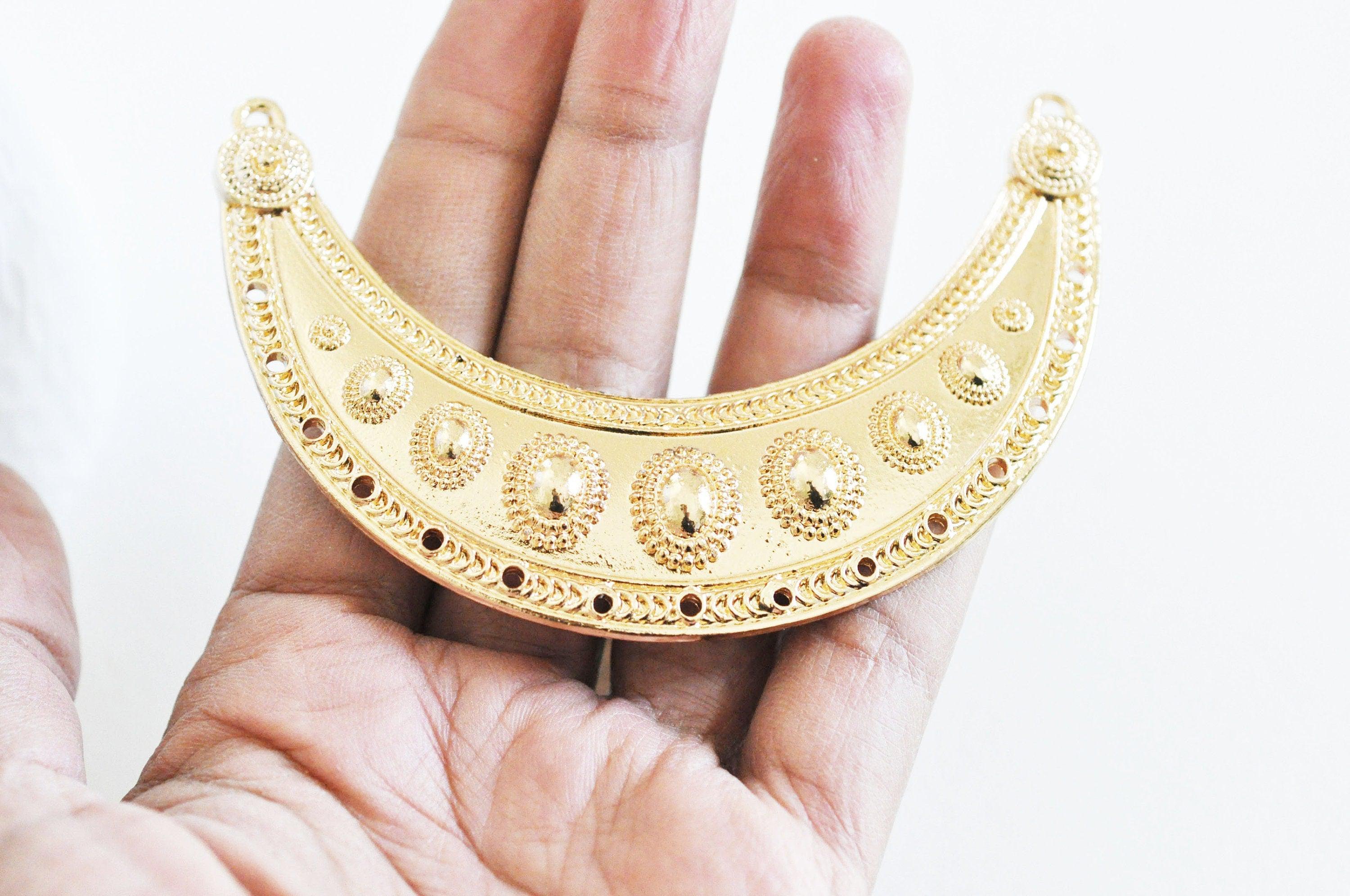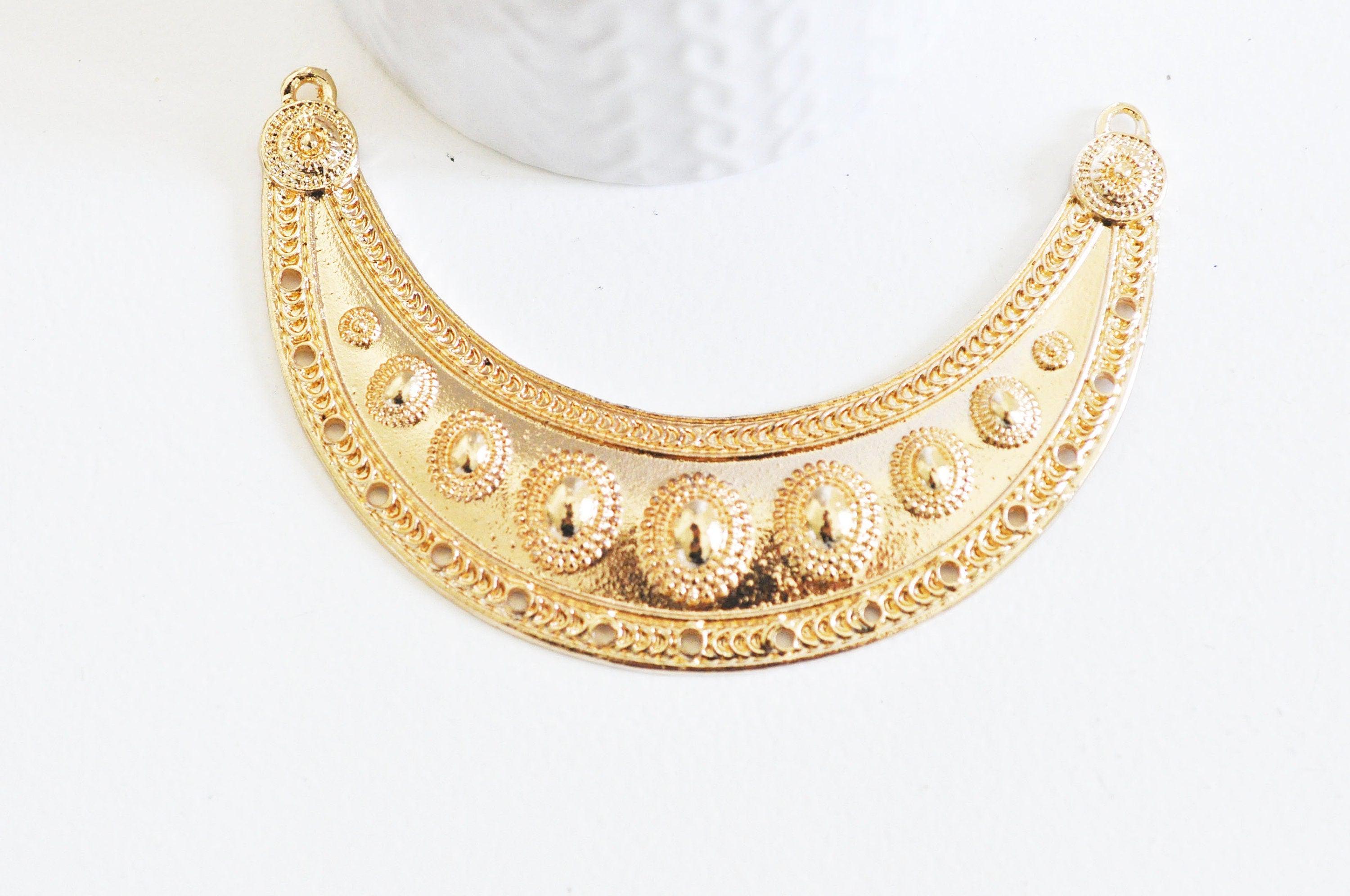 A very large gold zamac connector pendant to make magnificent bib necklaces. The pendant has two rings at each end as well as several holes (15 in total) to hang chains, charms, beads, etc. You can also decorate the elements...