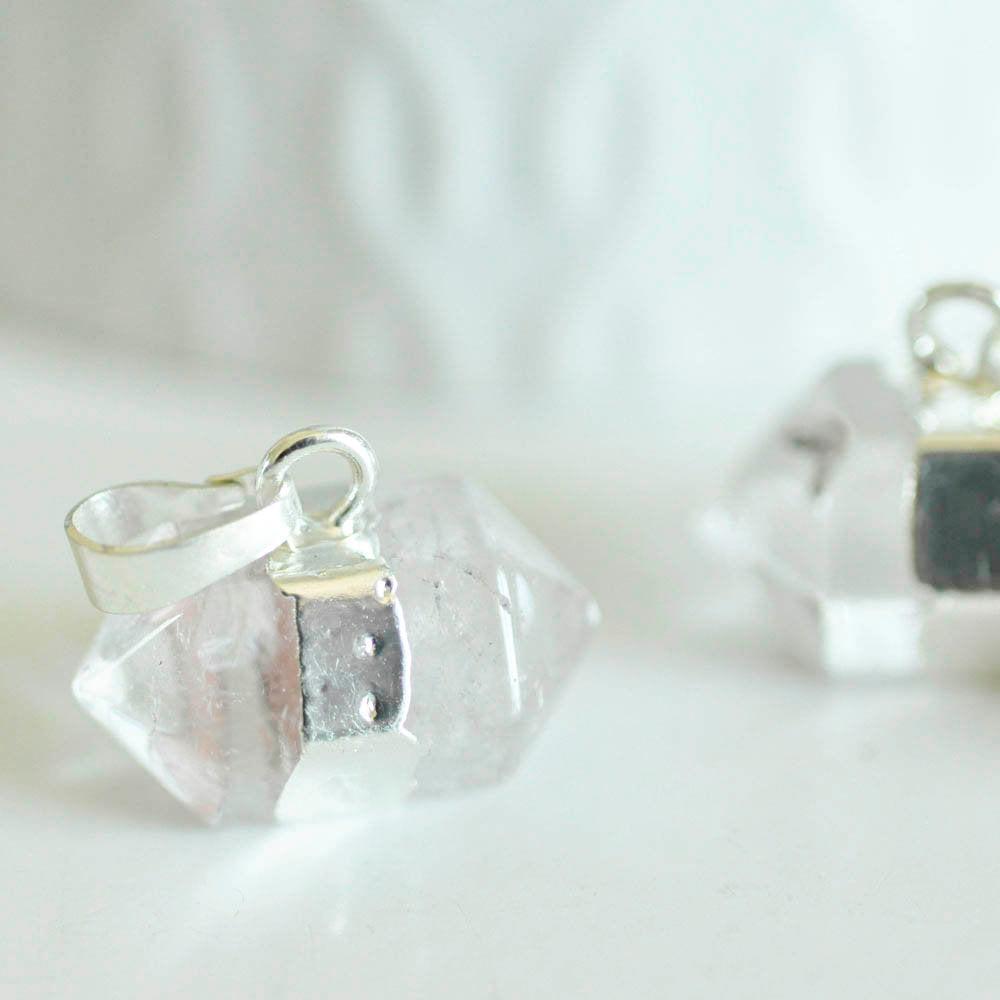 Transparent crystal point pendant, creative supply, jewelry pendant, stone pendant, natural crystal, crystal pendant, silver pendant, 22mm