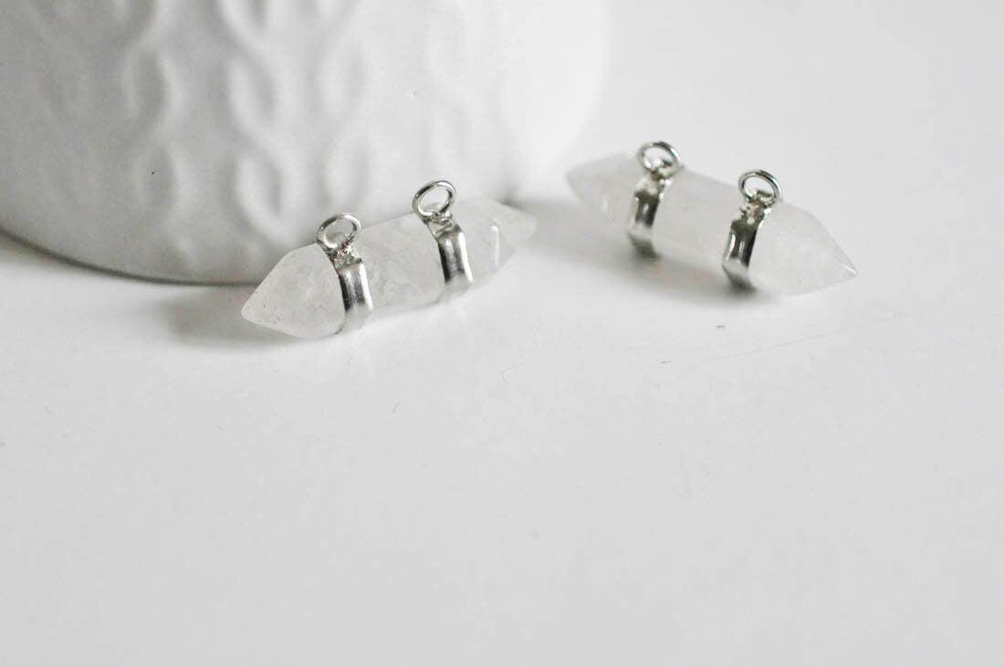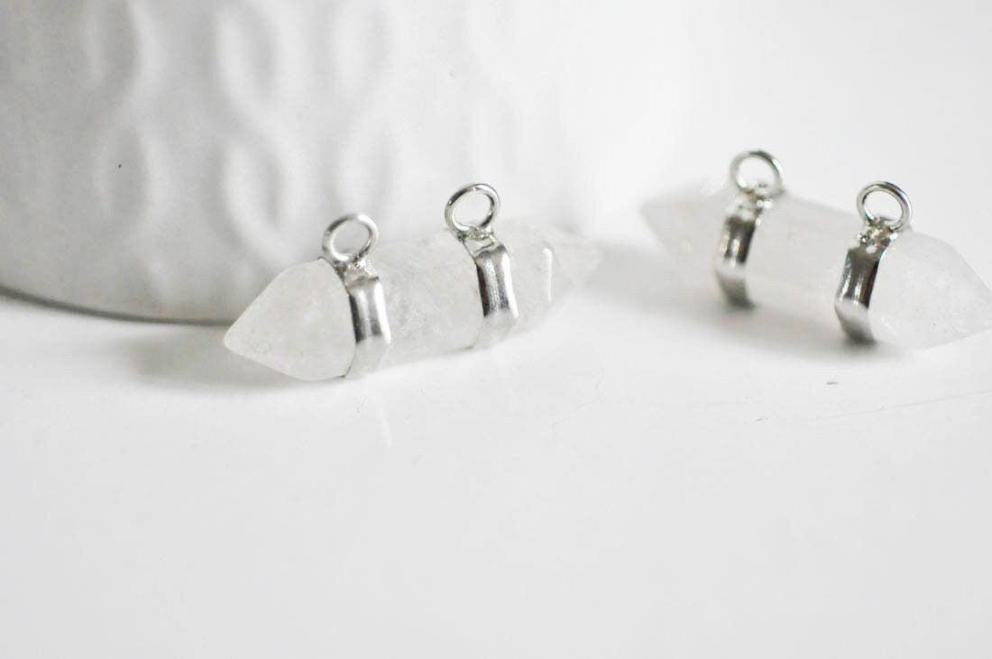 EP Double Silver Crystal Point Pendant, Stone Pendant, Silver Holder, Jewelry Creation, Natural Stone, 32mm-G2303