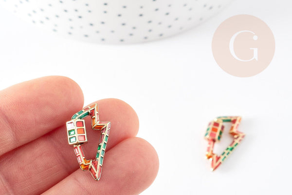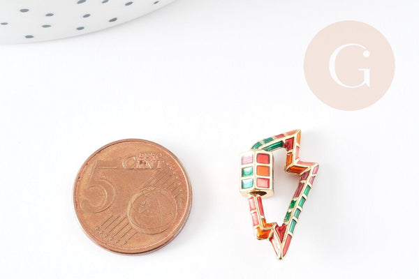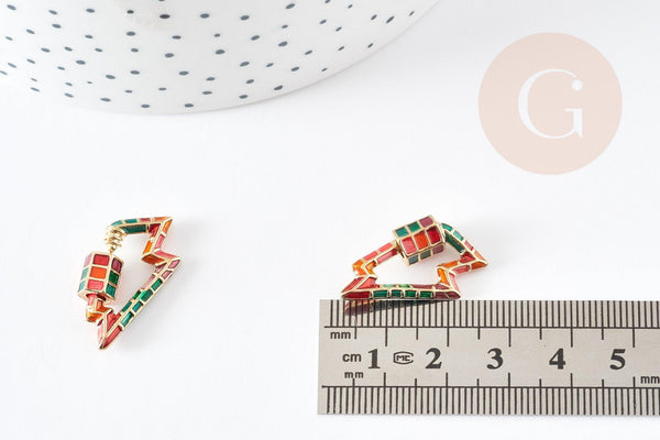 A lightning-shaped screw clasp in golden brass and colored enamel for your necklaces, bracelets and necklaces: solid and quality, it will highlight your minimalist jewelry.
